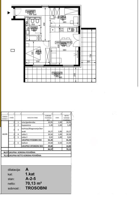 70.13 M2 NETO+21.40 M2 GARAŽA+ 4.20 M2 SPREMIŠTE(U CIJENI)