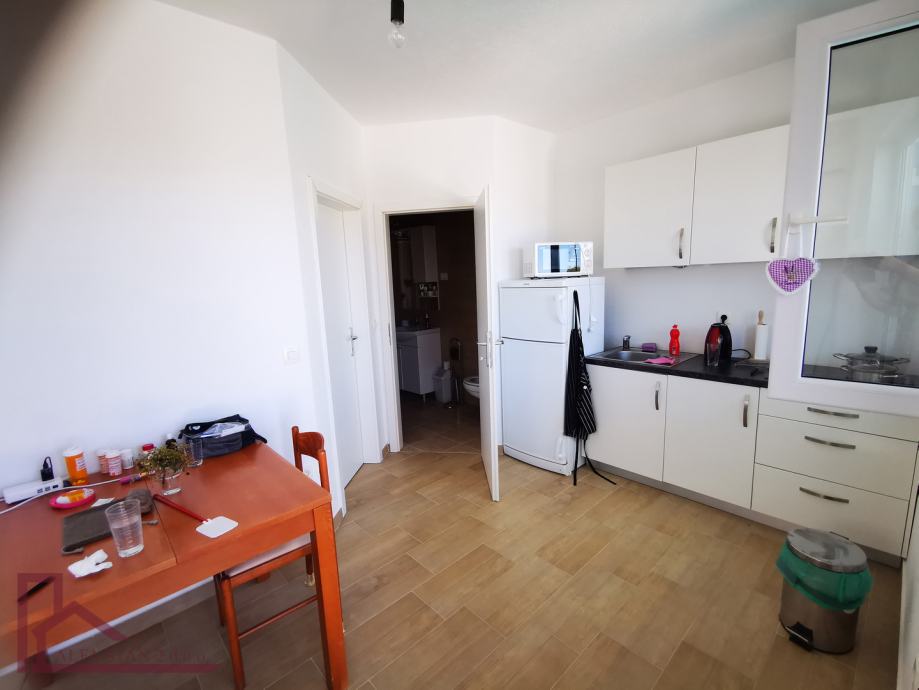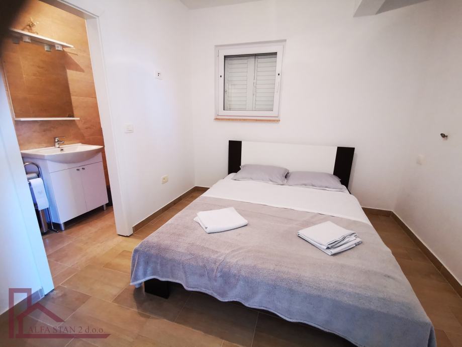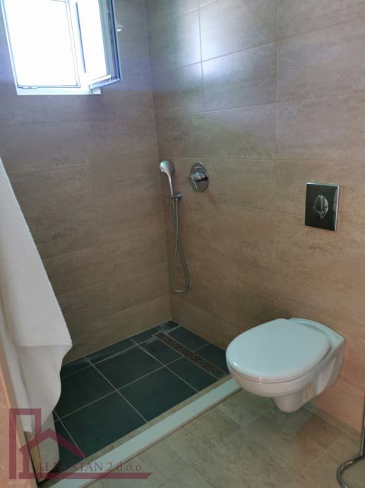 • Na visokom prizemlju objekta, iznad garaža, se nalaze uređene dvije stambene jedinice. Jedan stan ima jednu sobu i kupatilo , ukupne površine cca 24 m2 + terasa od 14 m2, a drugi stan ima površinu cca 40 m2 , s dvije sobe i dva kupatila, a kuhinja sa blagovaonicom i dnevnim boravkom ima izlaz na terasu površine 18 m2.Ispred ova dva stana se nalazi zajednička terasa cca 57 m2 na kojoj se nalazi manji bazen od cca 8,5 m2.