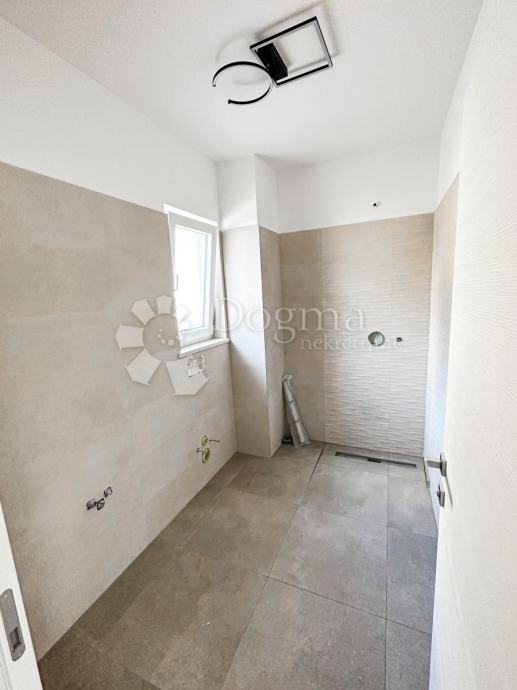 Na donjem katu su veliki open - space dnevni boravak i kuhinja, sa walk - in ormarom, gostinjskim wc-om te wellnessom i teretanom.