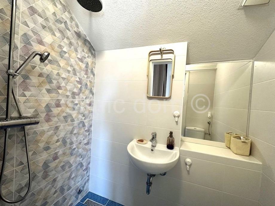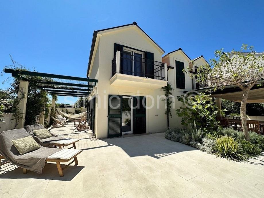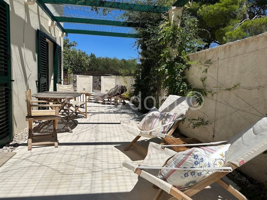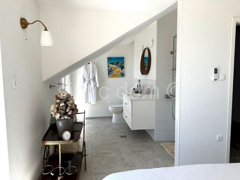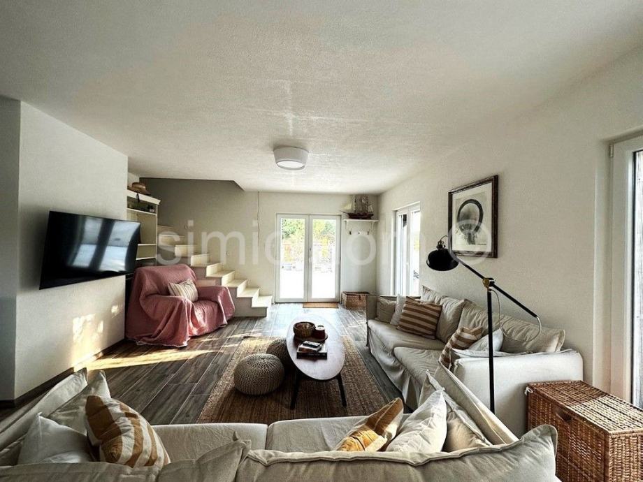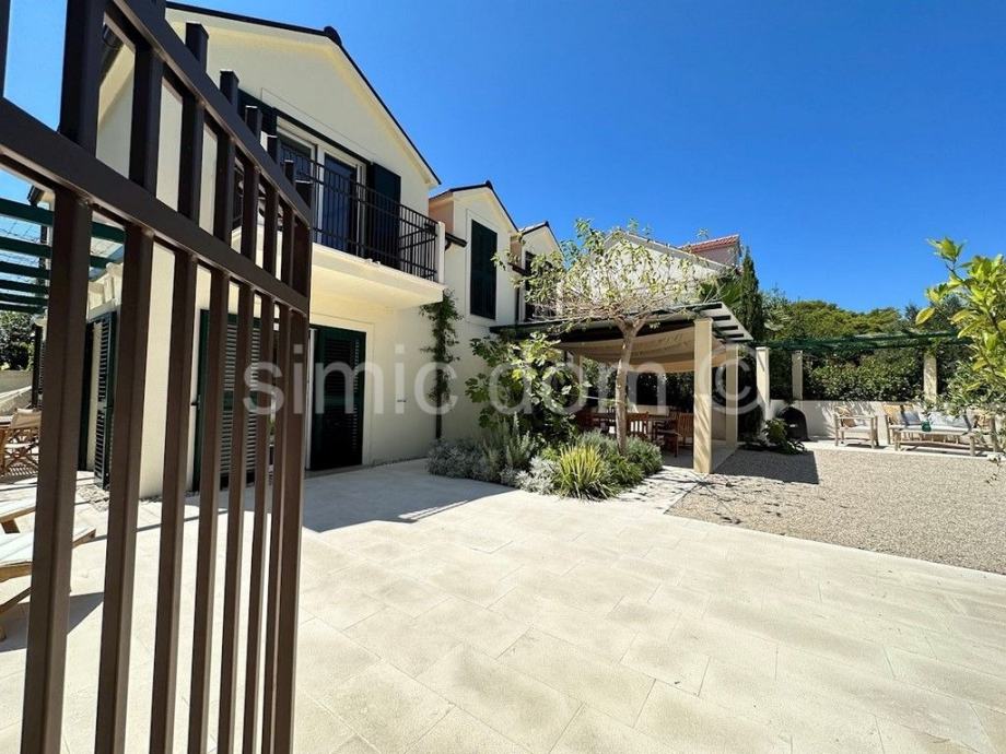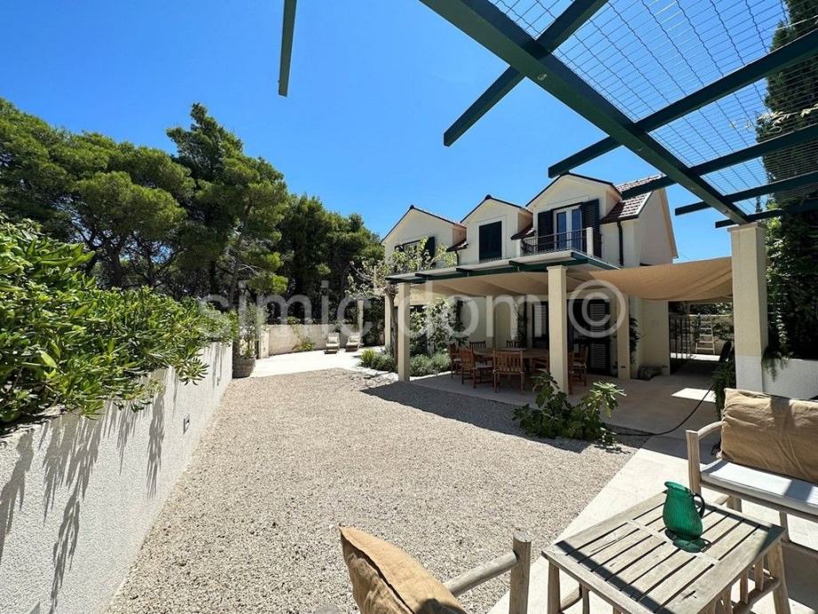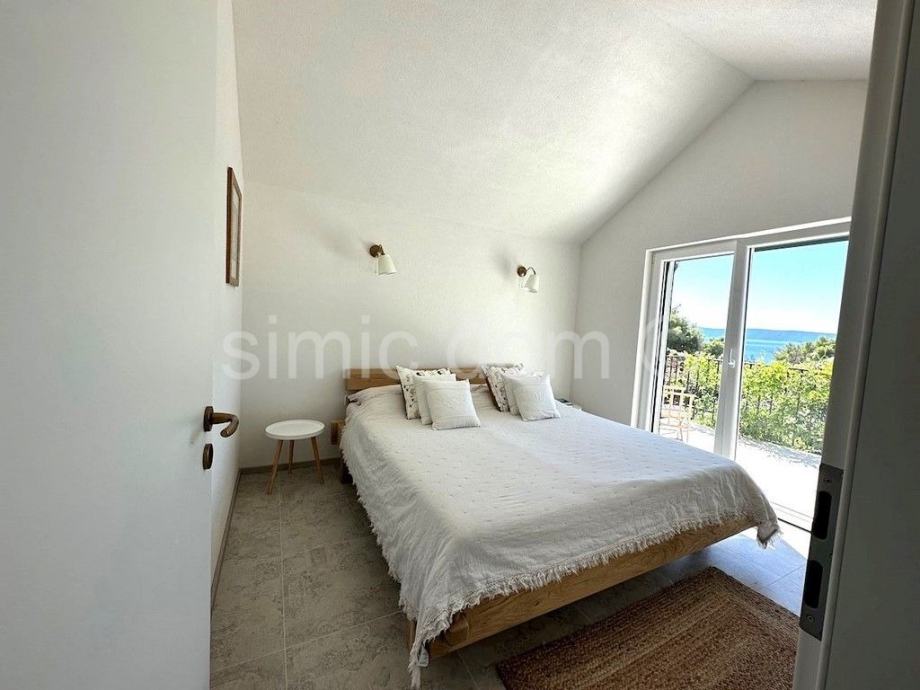 Posredujemo u prodaji predivne novoizgrađene kuće na otoku Braču, smještene na udaljenosti od oko 100 metara od prekrasnog mora. Površina kuće iznosi 150 m2, a površina parcele na kojoj je položena je 300 m2. Prizemlje kuće sadrži predivno opremljeni i koncipirani dnevni dio te WC/praonicu rublja. Na katu kuće nalaze se 4 spavaće sobe (svaka ima privatni balkon) te dvije kupaonice od kojih je jedna en-suite. S kata se pruža pogled na more.