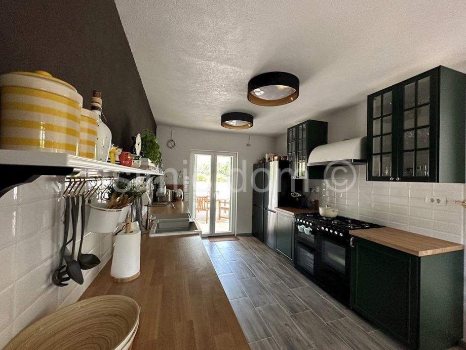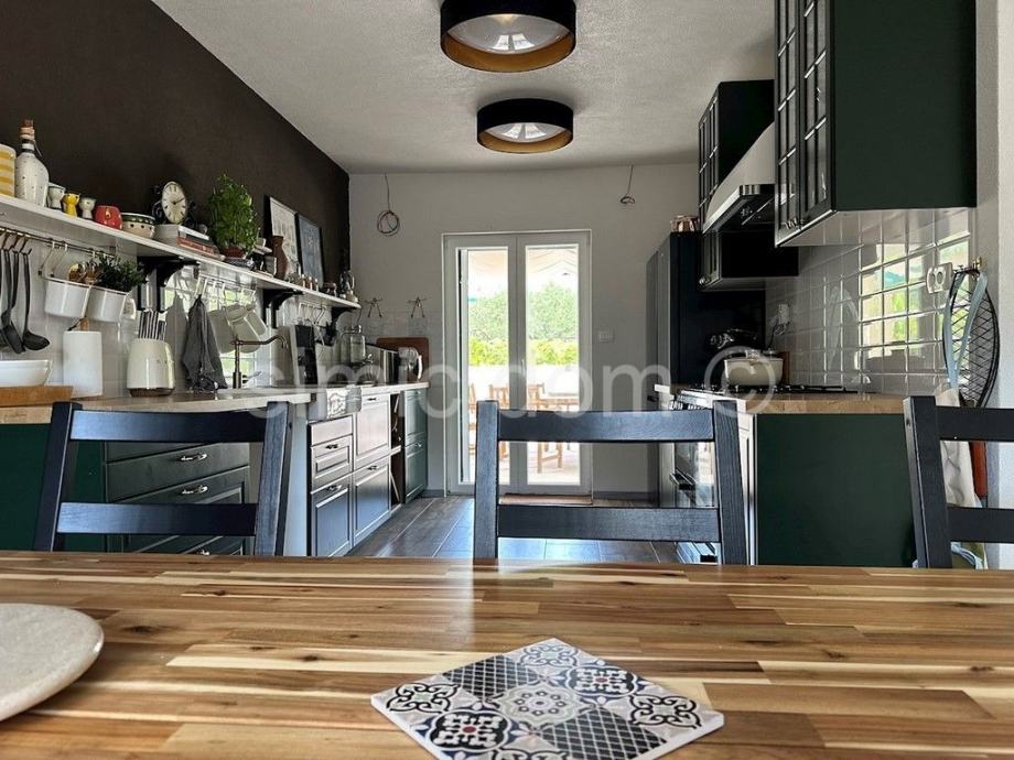 Posebna prednost ove nekretnine je njena prekrasna zelena okućnica te cjelokupno okruženje u kojem je smještena – tik uz manju šumu. Okućnica sadrži nekoliko ugodnih zasebnih zona, s hladovinom. Postoji također i mogućnost za postavljanje bazena. Kuća se prodaje potpuno namještena i opremljena kako je prikazano na slikama, što je odlična prednost.