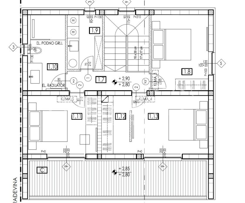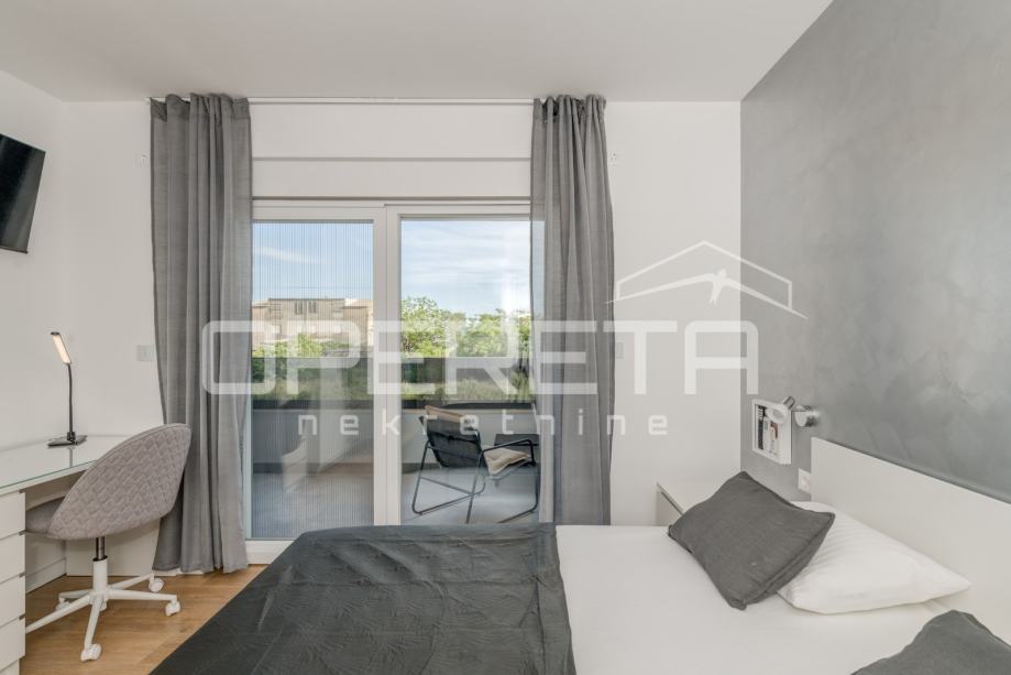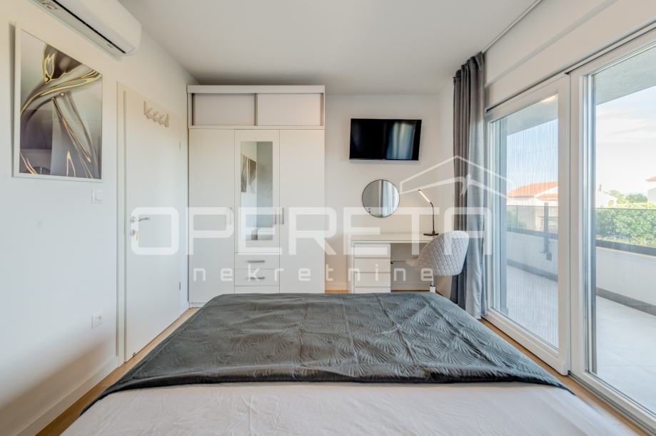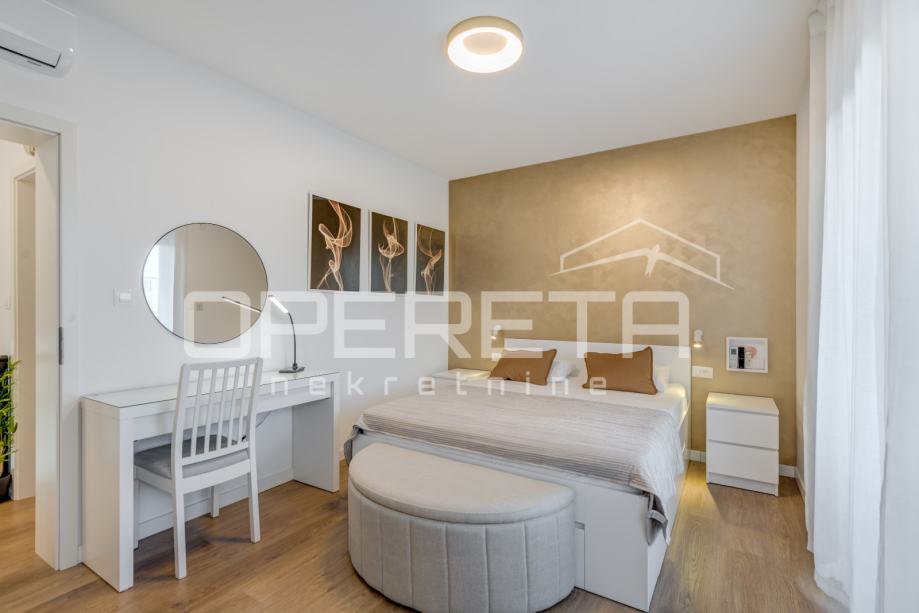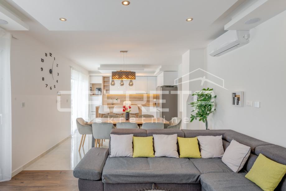 Kroz dvije etaže i svojih 181 m2 (202 m2 bruto površine) nalaze se 4 spavaće sobe, otvoreni dnevni boravak s kuhinjom i blagovaonicom, 2 kupaonice, odvojeni toalet, 2 spremišta, garderoba i vešeraj.