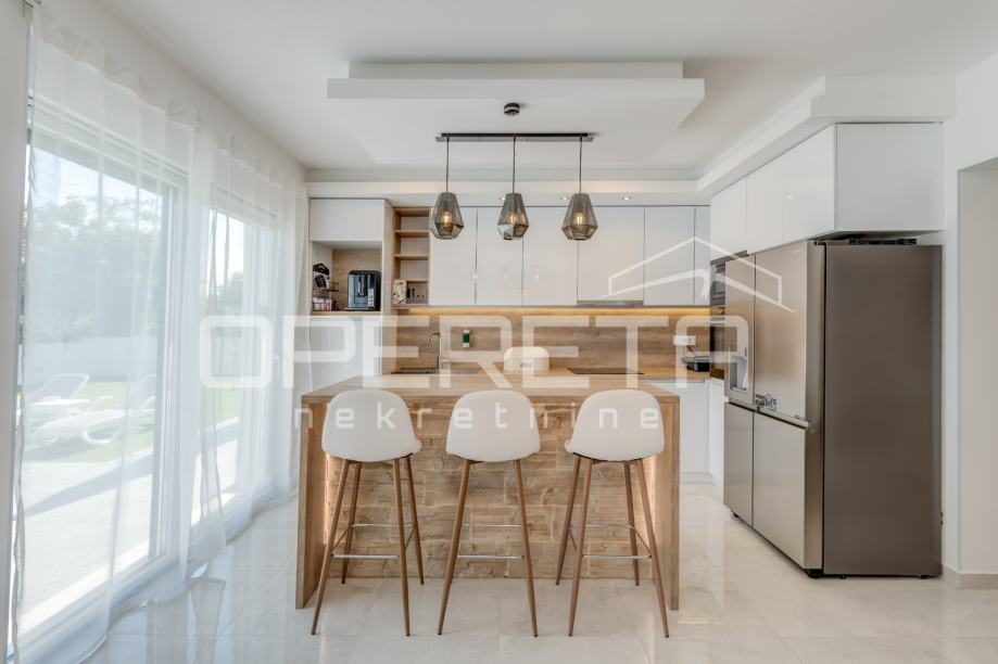 Vila je u potpunosti opremljena i namještena. Svaka soba je klimatizirana, provedeno je podno grijanje, a kuća ima ugrađen smart home uređaj za kontrolu većine opreme, poput el. roleta, klima, podnog grijanja i muzike.