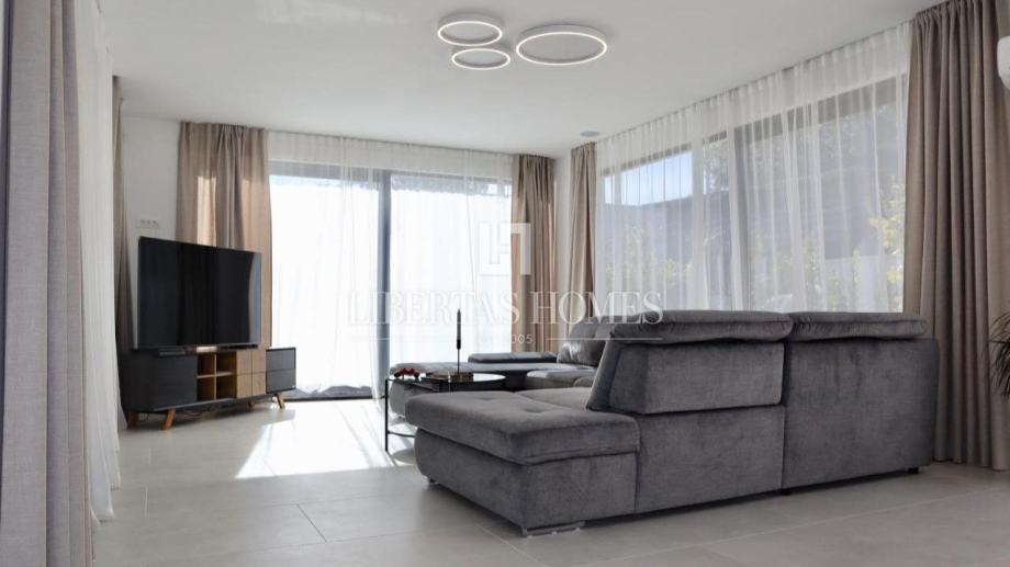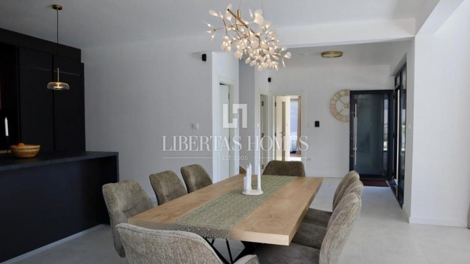 Za dodatnu sigurnost, vila je opremljena modernim sustavom nadzora, uključujući četiri nadzorne kamere i alarmni sustav sa senzorima pokreta, dima i vode. Vanjski prostor idealan je za druženja, s natkrivenim dijelom za objedovanje i roštiljem, a ugrađeni vanjski zvučnici stvaraju ugodnu atmosferu. Cjelokupna parcela ograđena je kamenim zidom i metalnom ogradom, pružajući dodatni osjećaj privatnosti, dok parkiralište može primiti četiri automobila.