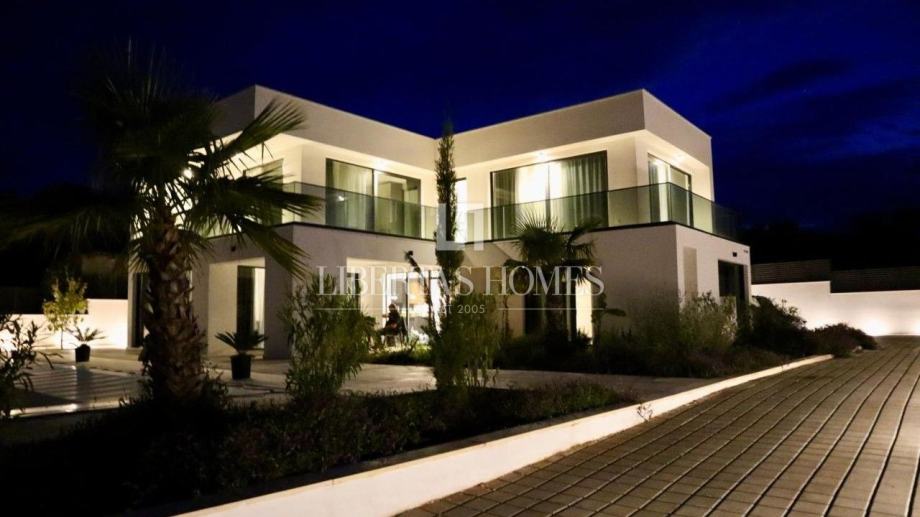 Eksterijer vile jednako je impresivan kao i njezina unutrašnjost. Bujna okućnica bogata je raznolikim biljnim vrstama, uključujući tropske palme, agrume i mirisne mediteranske grmove poput lavande i oleandra. U središtu dvorišta nalazi se bazen s prostranim sunčalištem, savršenim za uživanje u toplim ljetnim danima. Uz bazen su smještena dva dodatna objekta: jedno skladište i wellness prostor s tušem, saunom i teretanom, omogućujući vlasnicima potpuni opuštajući doživljaj.