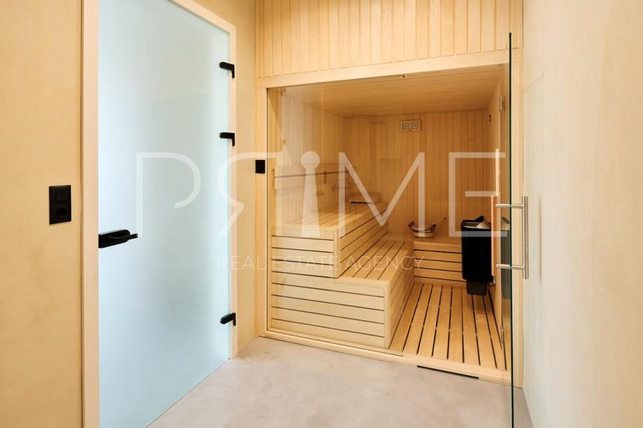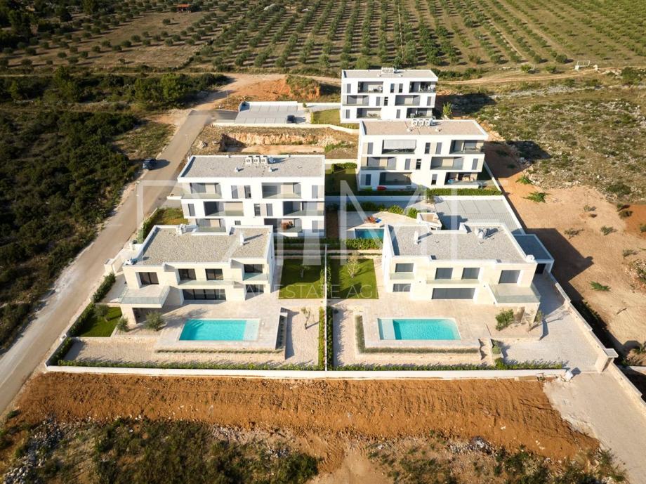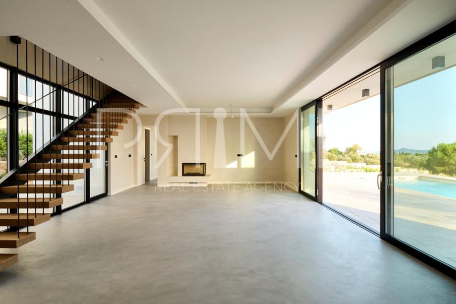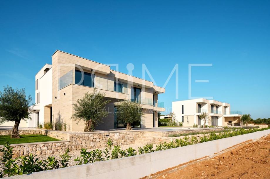 Moderna vila površine 263 m2 nalazi se na parceli površine 780 m2. Udaljenost od mora je 550 metara. Sastoji se od dvije etaže: prizemlja i prvog kata. U prizemlju se nalaze kuhinja, blagovaona,dnevni boravak, wc, sauna, fitness, strojarnica, spremište i garaža dok se na prvome katu se nalaze 4 spavaće sobe, tri kupaonice, walk in ormar, praonica, terasa i tri balkona. U izgradnji i opremanju su korišteni isključivo najkvalitetniji materijali od renomiranih proizvođača. Vila je građena da zadovolji standarde 5* (u slučaju da se budući vlasnik želi baviti turizmom). Potpuno je klimatizirana. Ima vanjski grijani bazen površine 50 m2. Iz vile se pruža prekrasan pogled na more . Vlasnik je pravna osoba u sustavu PDV-a tako da je kupac oslobođen poreza. Više informacija na upit!!