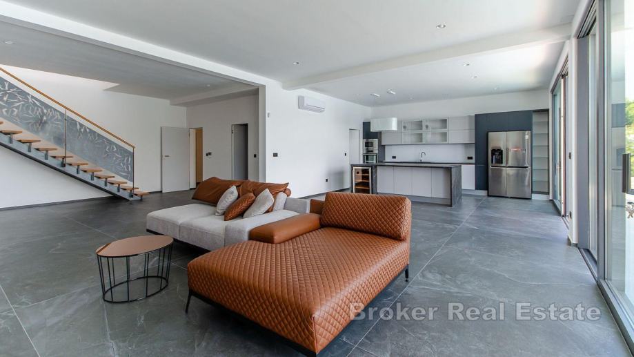 zahvaljujući aluminijskim prozorima od poda do stropa očaravajući otvoreni pogled na more ostaje vam na vidiku, čak i ako stojite u dnevnom boravku.