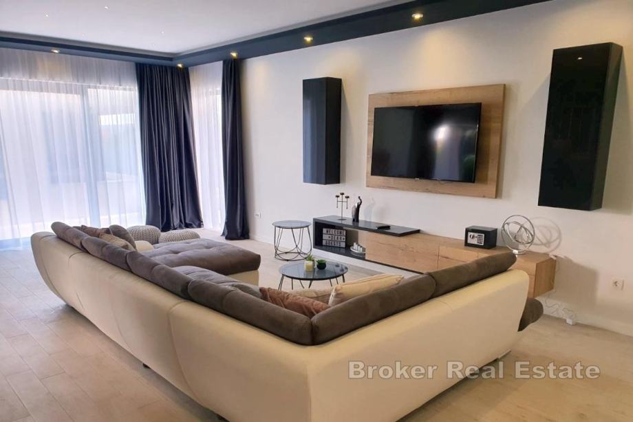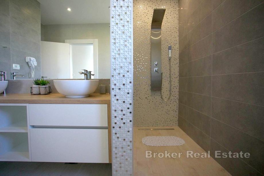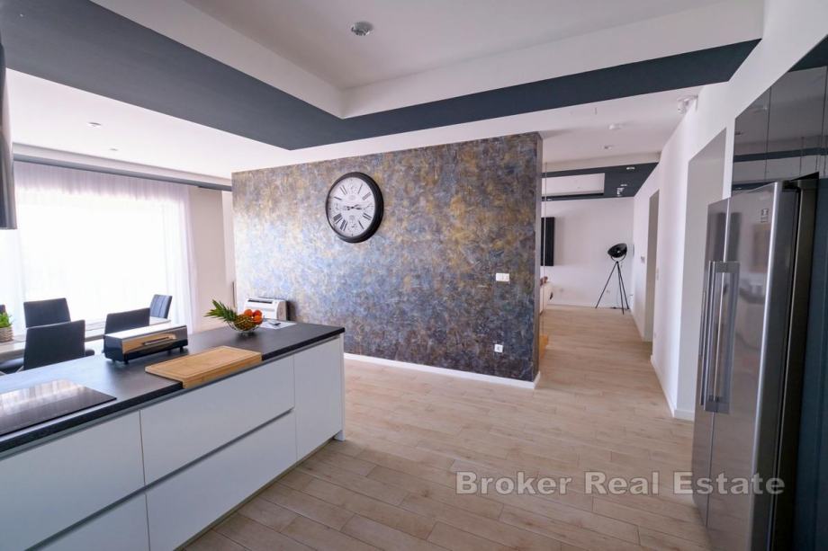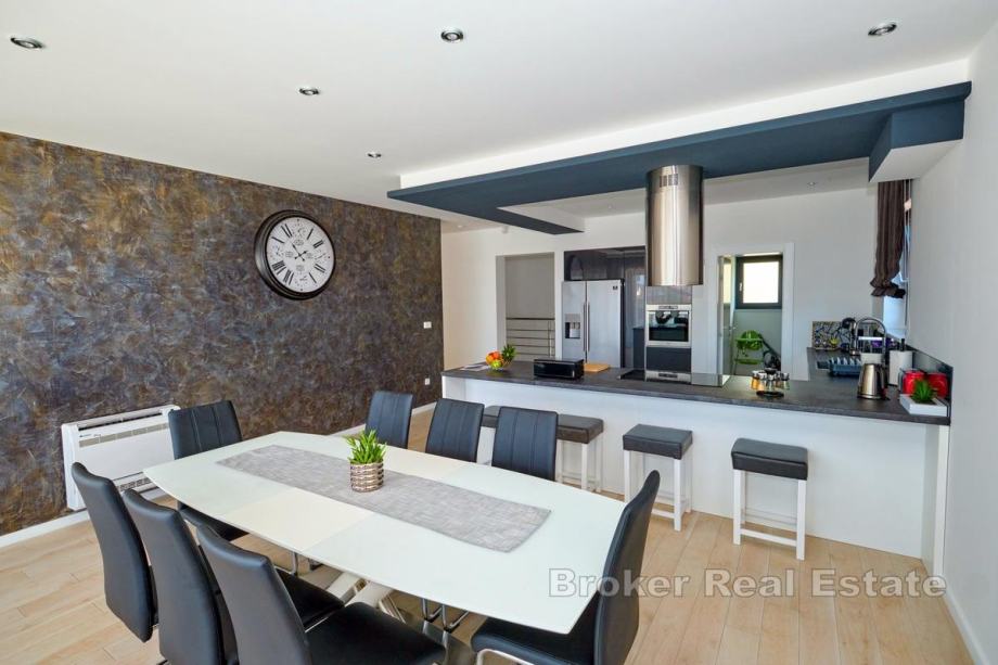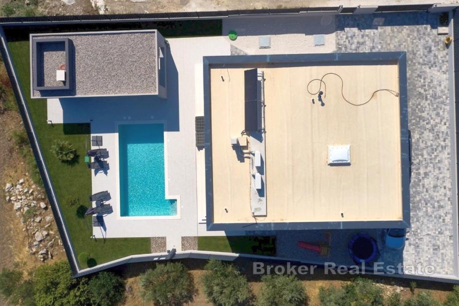 Na prodaju je novoizgrađena villa s bazenom na području Kaštela. Izgrađena je na zemljištu površine 750 m2, a okolne kuće su također novije gradnje pa će susjedstvo izgledati dosta uredno.