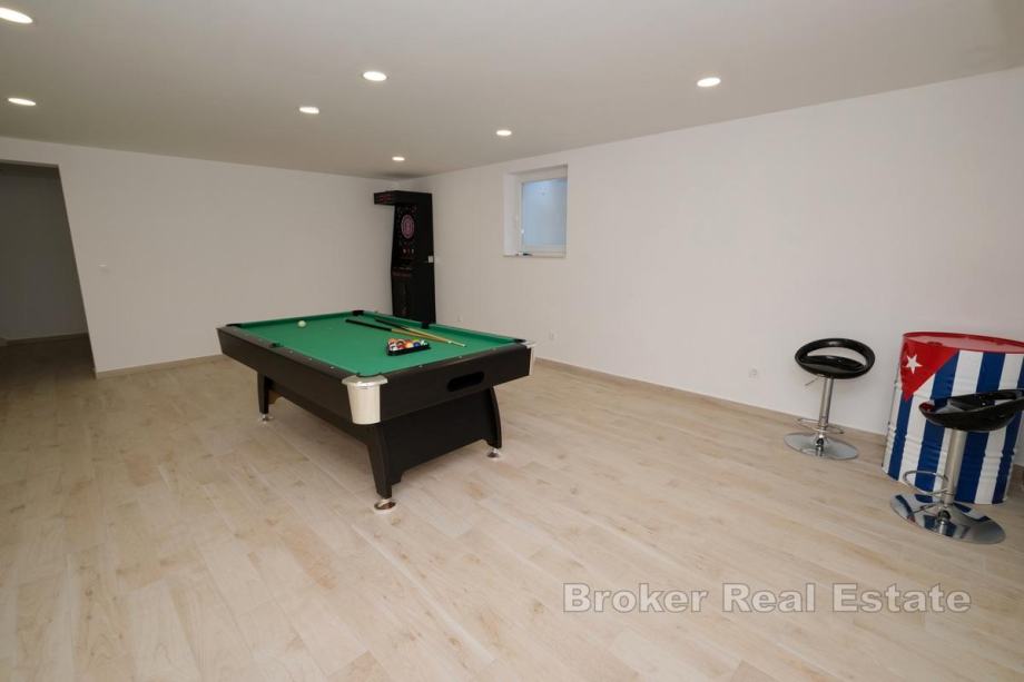 Podrum ima površinu od 110 m2, a sastoji se od praonice, vinskog podruma – konobe, sobe za jacuzzi, kupaonice i sobe za fitness.