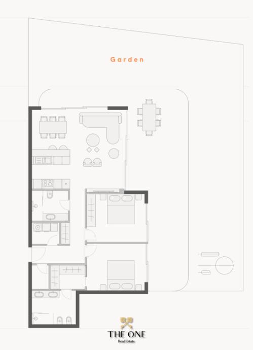 Stan 1 površine 146,70 m², prostrani dvosoban stan s privatnim vrtom površine 160 m2 i terasom, dvije kupaonice, ostava i vešeraj, cijena: 1.664.350,00 €