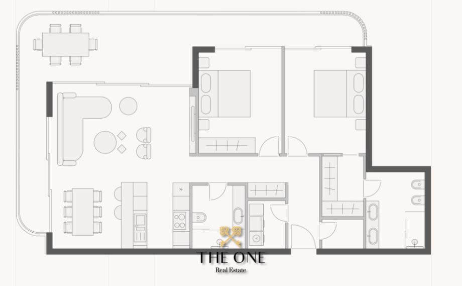 Stan 6, površine 142,90 m2, dvosobni stan s velikom terasom, dvije kupaonice, ostava, vešeraj, cijena: 1.397.550,00€