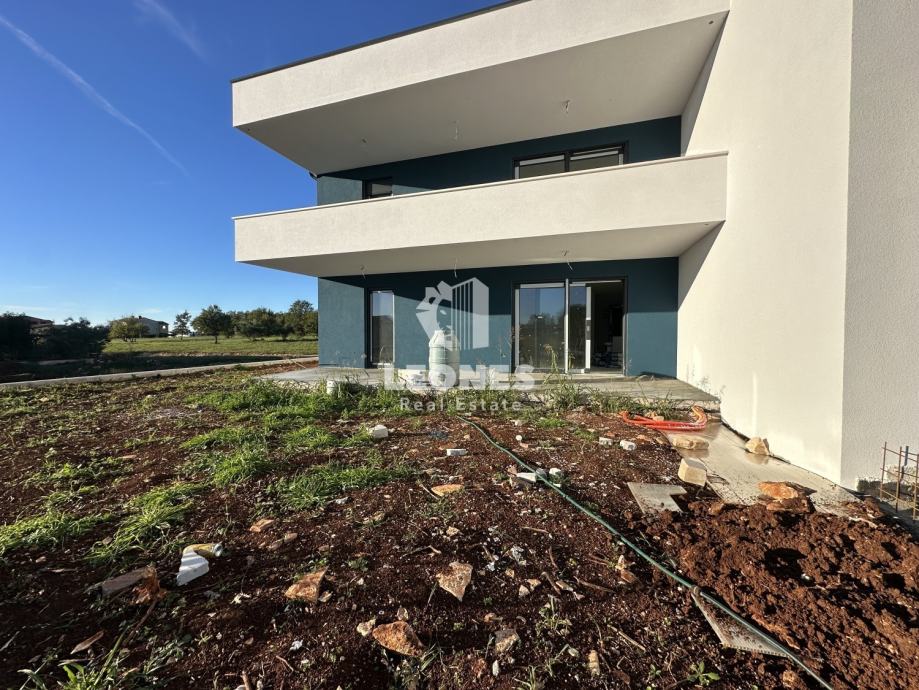 Novoizgrađeni stan s dvorištem i velikom natkrivenom terasom u Novigra (prodaja)