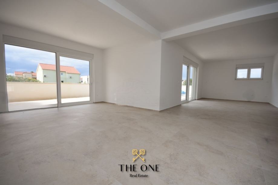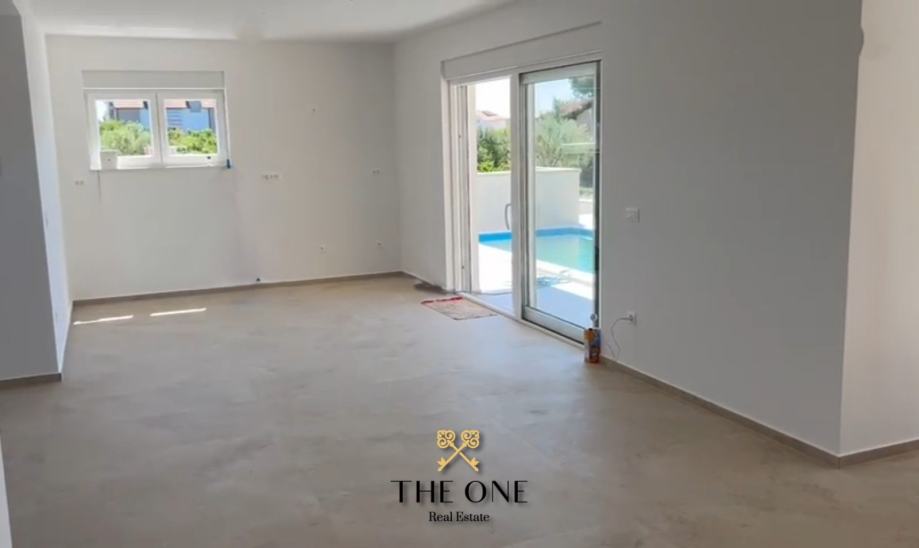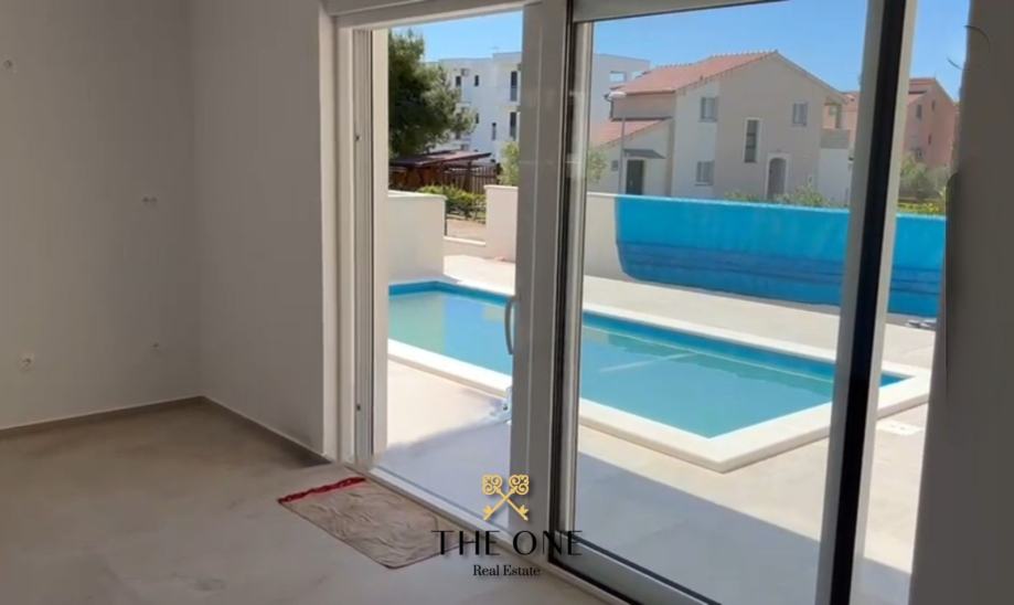 Na okućnici uz natkrivenu terasu se nalazi privatni bazen sa sunčalištem, vrt površine 119 m2 te dva parkirna mjesta.