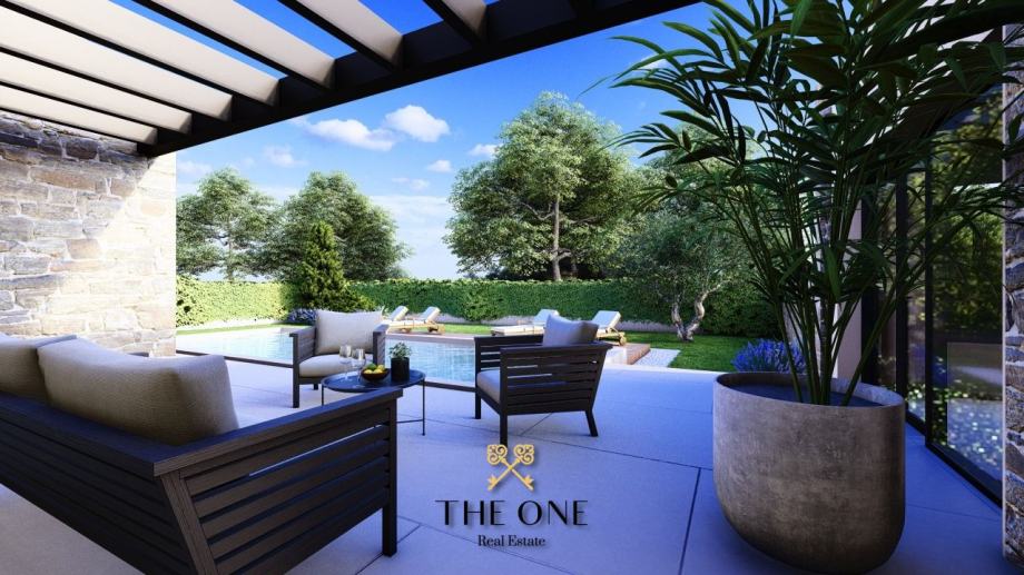 Otkrijte luksuz i udobnost u ovoj novoizgrađenoj jednokatnici smještenoj na mirnoj rezidencijalnoj lokaciji u blizini Poreča.