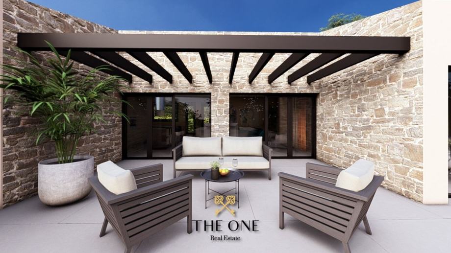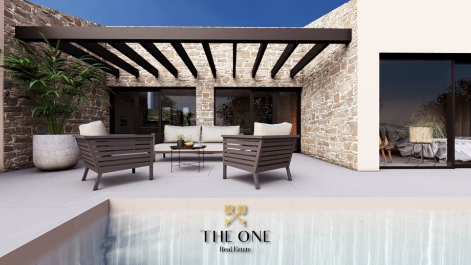 Eksterijer vile je posebno dizajniran za opuštanje i uživanje u svakom trenutku. Terasa natkrivena pergolom savršena je za okupljanja i obroke na otvorenom, dok bazen sa sunčalištem pruža oazu mira i opuštanja.