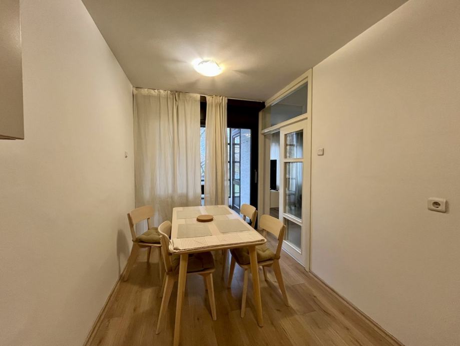 Lokacija stana pruža mirno okruženje i istovremeno blizinu svih ključnih sadržaja kao što su trgovine, javni prijevoz i rekreacijske zone. Jezero Jarun je na par minuta udaljenosti. Stan je idealan za studente ili mlađi par.