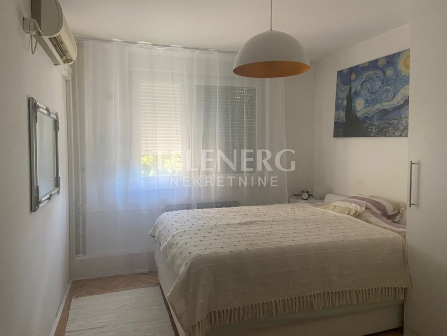 Lijepo uređen, klima. Protuprovalna vrata. Gleda na jug i park te je vrlo miran.
