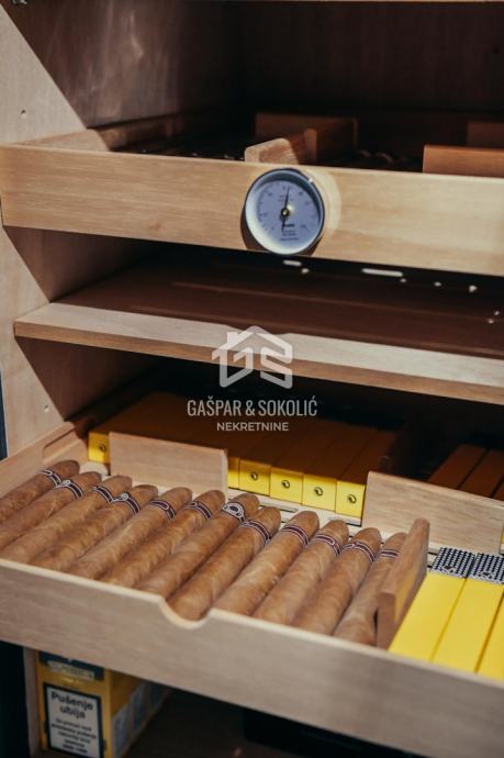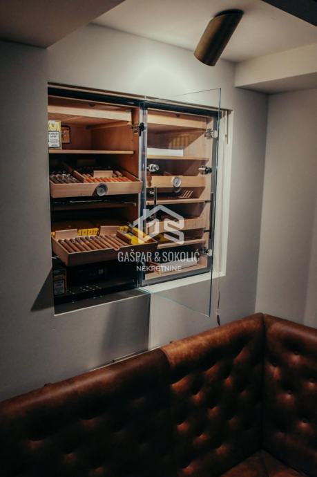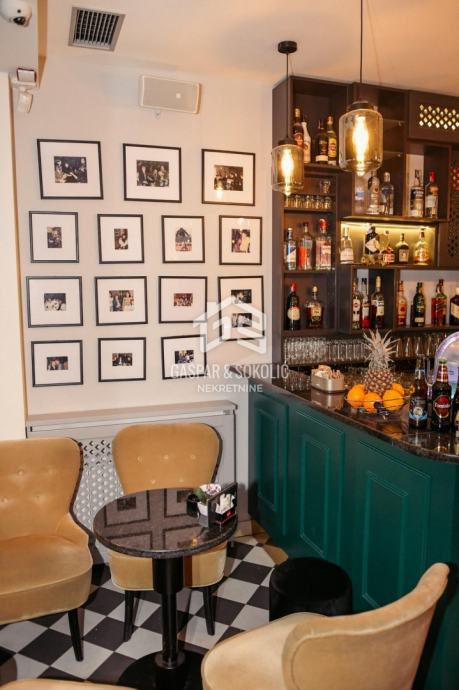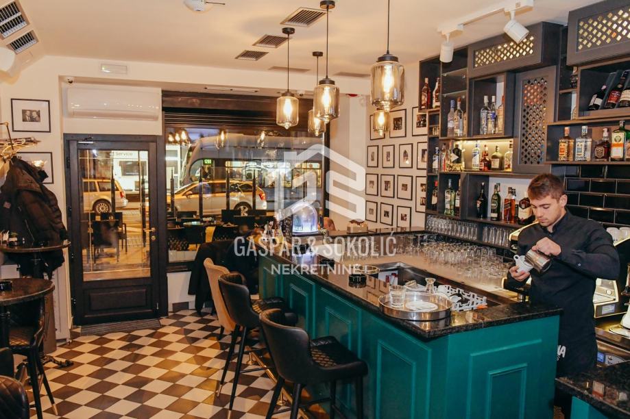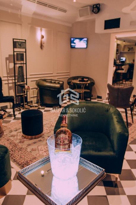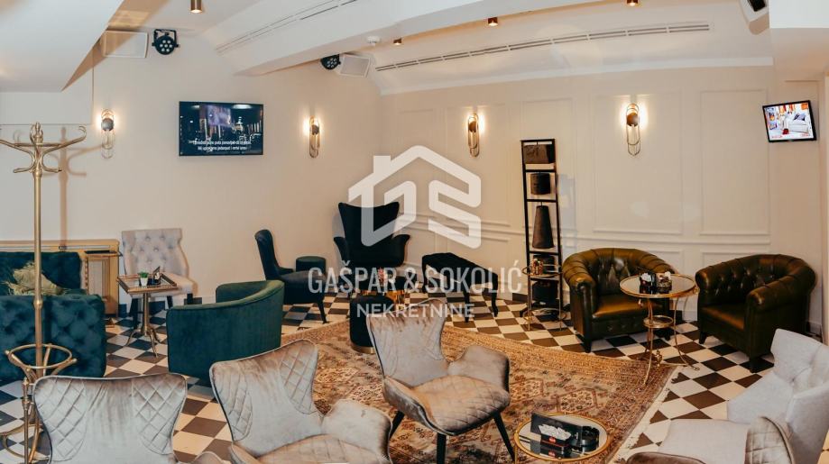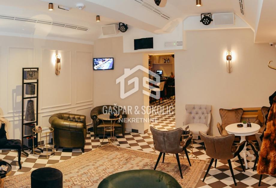 Kafić posluje od 1976. godine, a trenutno ne radi. Sav namještaj i uređaji su novi, ventilacija s izmjenama zraka (dozvoljeno pušenje), grijanje, klima, dva nova šanka, vrhunsko ozvučenje, cigar klub. Prizemlje ima 41m2, podrum 70m2, toaleti na obje etaže. Terasa je ispred kafića, s 5 stolova i važećim ugovorom s Gradom Zagrebom do 2026.godine. Kafić ima sve uvjete da odmah može početi raditi.