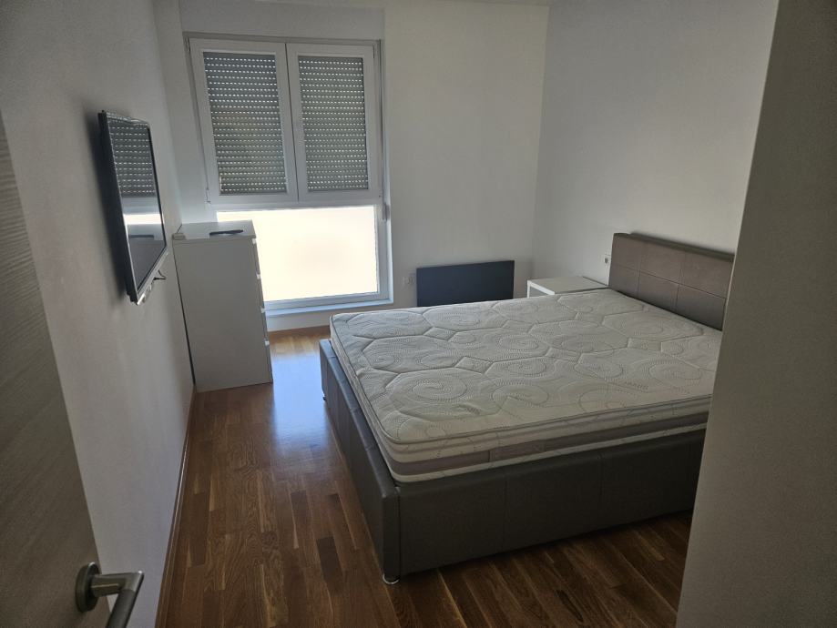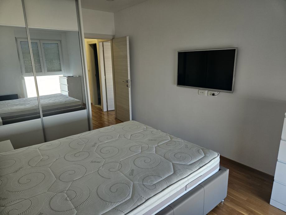 Novouređen je i kompletno opremljen (perilica i sušilica za rublje, perilica za posuđe, podno grijanje, klima...). Stan je orijentiran Jugo-Zapad i Sjevero-Istok, nalazi se na 5. katu i zgrada ima ugrađen lift. Sastoji se od dvije velike spavaće sobe, jednog kupatila, jednog wc-a, kuhinje, blagovaonice i dnevnog boravka, te velike lođe.