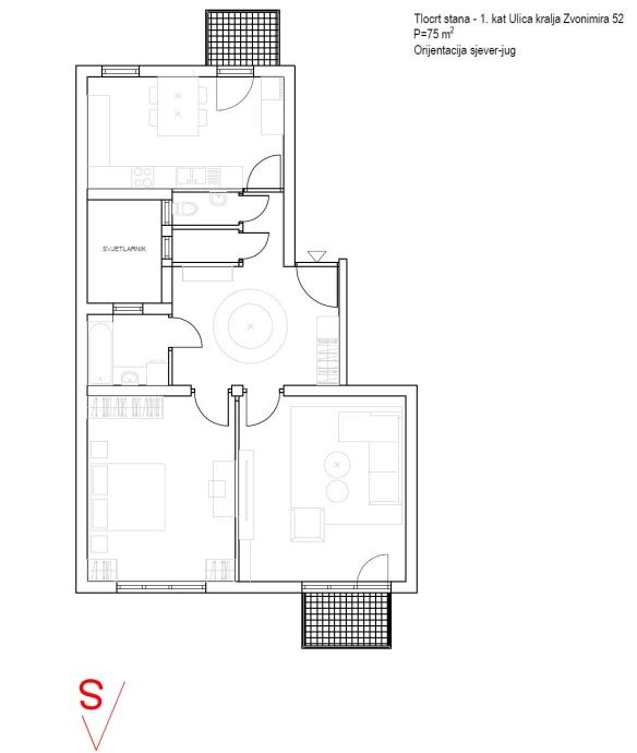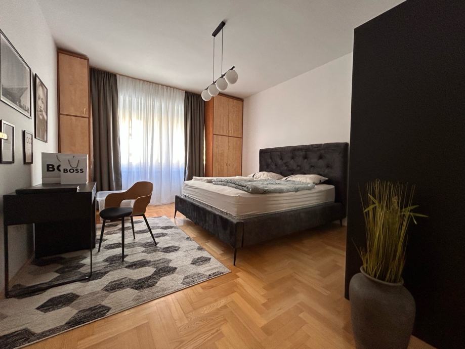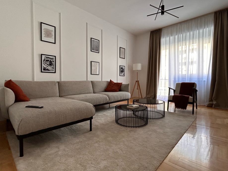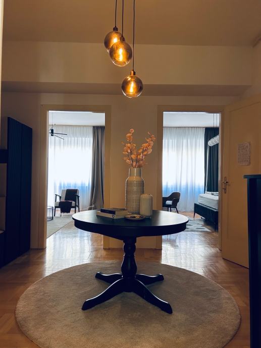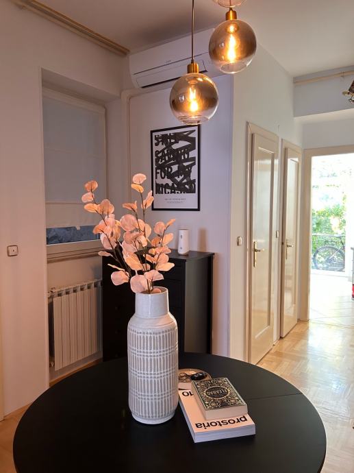 Novouređen stan u stambenoj zgradi u centru Zagreba. Stan je potpuno namješten, a stambena zgrada unutar koje se isti nalazi energetski je obnovljena izradom ETICS fasade od kamene vune. Stan je površine 75 metara kvadratnih i pripada mu spremište u suterenu kao i postotak zajedničkih površina (dvorište i sl.). Sastoji se od ulaznog prostora, kupaonice, odvojenog zahoda, izbe, kuhinje i blagovaonice, dnevnog boravka, spavaće sobe te dva balkona od kojih se jedan nalazi na uličnom pročelju s kojeg se pruža pogled na ulicu kralja Zvonimira, dok se drugi nalazi na dvorišnom pročelju. Višestrana orijentacija stana (sjever-jug) omogućava prirodno provjetravanje stana. Vanjska stolarija je također zamijenjena (PVC). Grijanje etažno centralno plinsko, hlađenje pomoću klima uređaja. Bez agencijske provizije.