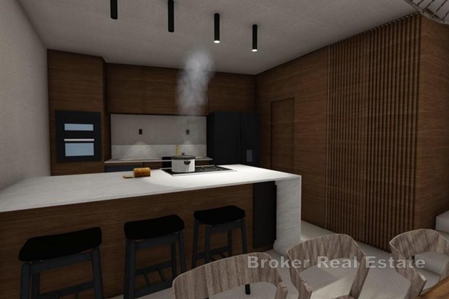 Stan je opremljen podnim grijanjem i hotelskim klima jedinicama, što osigurava visoku razinu udobnosti tijekom cijele godine . Dominantni elementi u dnevnom dijelu i spavaćim sobama su kamen na zidovima i stropovima, kao i kamene stube pri ulazu i unutar dnevnog prostora. U tijeku je završna faza radova.