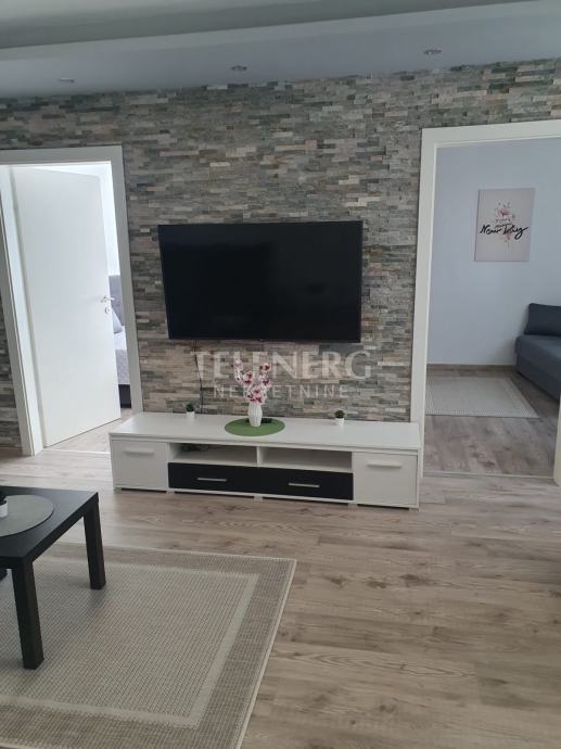 Stan je u potpunosti opremljen novim kvalitetnim namještajem i uređajima, kuhinja sa svim uređajima (hladnjak + ledenica, perilica posuđa, staklo-keramička ploča za kuhanje, napa,pećnica), perilica rublja, TV, usisavač, posebna rasvjeta (uređaji su novi i nekorišteni pa je većina u jamstvu).Grijanje je centralno, a stan je i klimatiziran.