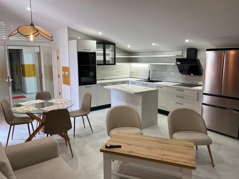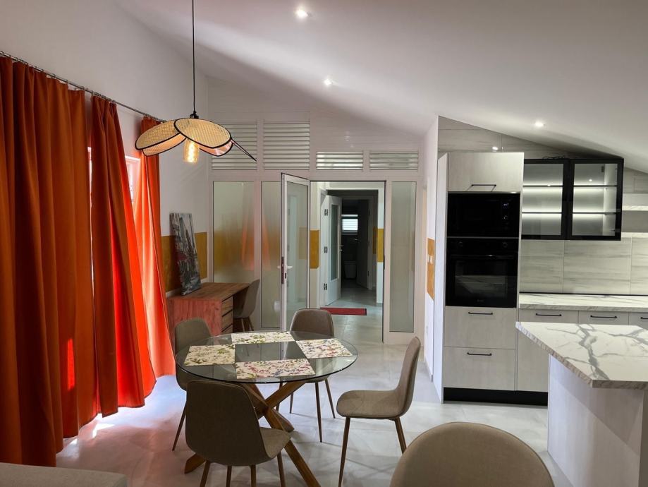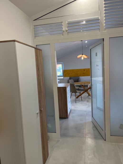 - kata, gdje se, kada se popne unutarnjim stepeništem, smjestio još jedan stan površine 118,55 m2, a koji se sastoji od: hodnika s WC-om, 2 spavaće sobe s kupaonicom, predsoblja, radne sobe, ogromnog prostora kuhinje,blagovaonice i dnevnog boravka s izlazom na južnu osunčanu terasu.