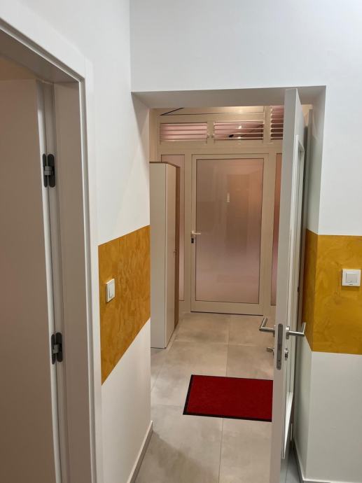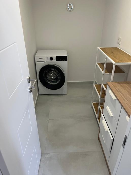- prizemlja u kojem je smješten komforan stan površine 126,30 m2, a sastoji se od ulaznog hodnika i predsoblja s garderobama, 2 spavaće sobe, 2 kupaonice, kuhinja s blagovaonicom i dnevnim boravkom koje imaju izlaz na istočnu zatovrenu lođu (gdje se nalazi i toalet), s pogledom na zeleni vrt i bazen