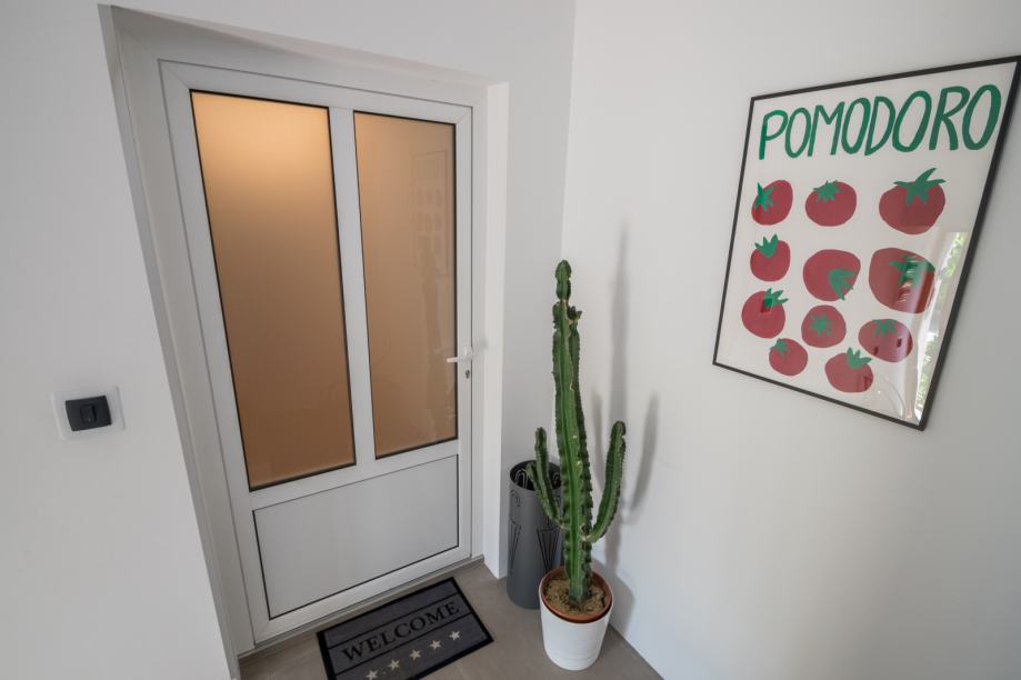 U donjem dijelu stana se nalazi zajednička prostorija za odmor, kuhinja, vešeraj i perilica rublja,susilica.