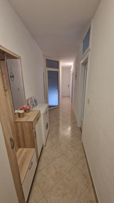 90 M KVADRATNIH, DRUGI KAT, DNEVNI BORAVAK I KUHINJA NOVO, KUTNA GARNITURA, BARSKI STOL I STOLICE SVE NOVO, HODNIK PREDSOBLJE, ORMAR ZA OBUĆU, DODATNI ORMARIĆ, LAMINAT U SOBAMA SVE NOVO, OKREČENO, WC NOVO, MOGUĆNOST DODAVANJA RADNOG STOLA U SOBAMA. MJERILO ZA EL. ENERGIJU POSEBNO, SVI KUĆANSKI UREĐAJI NOVI POD GARANCIJOM, SPREMNO ZA USELJENJE.