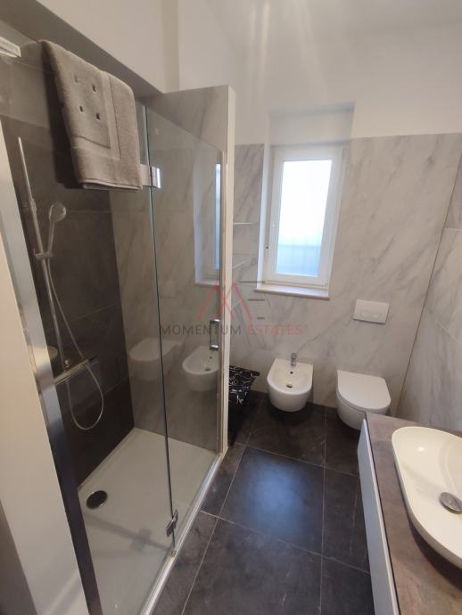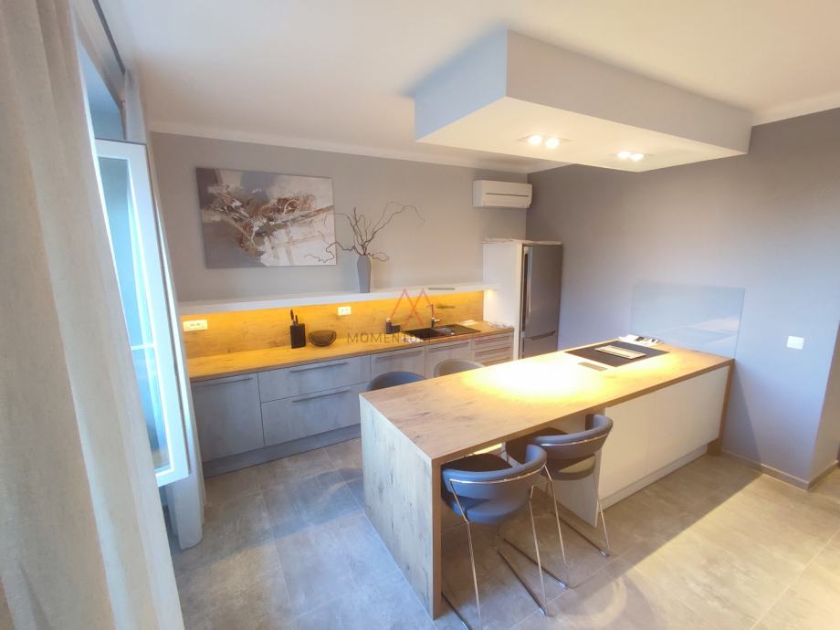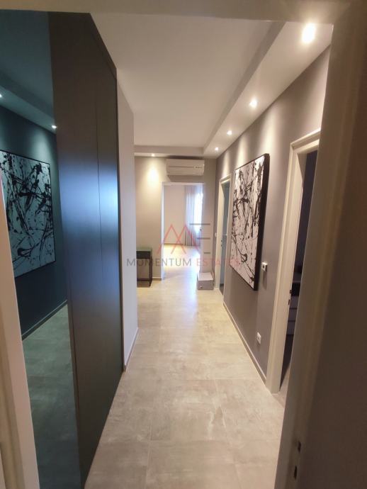 Iznajmljuje se luksuzan novouređeni 2sb+db stan na vrlo traženoj lokaciji. Stan je opremljen suvremenim i luksuznim najmještajem i uređajima visoke energetske učinkovitosti, te pruža potpuni komfor stanovanja. Uz podno grijanje stan je opremljen i kvalitetnim klima uređajima. Pogodan je za poslovni par obzirom je druga soba uređena kao radni prostor. Minimalni period najma 1 godina. Polog u visini jedne najamnine je obavezan.