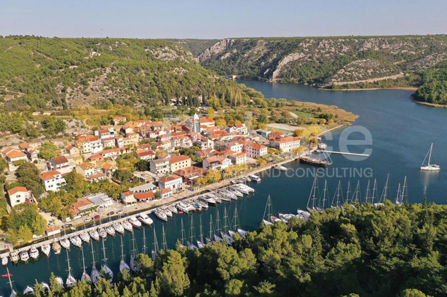 Stavlja se na prodaju novouređeni i kompletno opremljeni manji hotel u centru Skradina sa 13 spavaćih soba i restoranom, ukupne površine 812 m2., drugi red od mora.