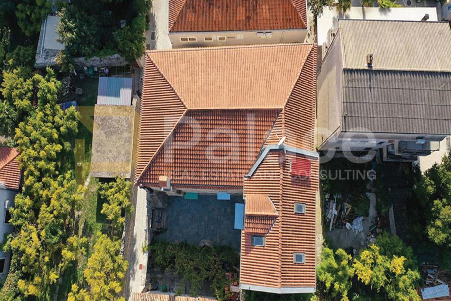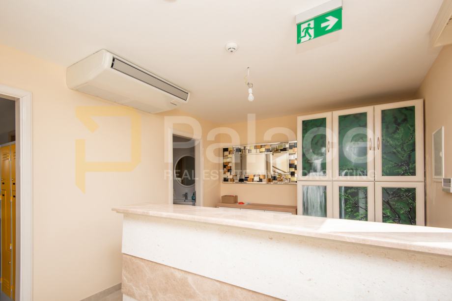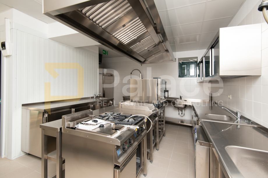 Ulaz je kroz malo popločano dvorište, u prizemlju se nalazi recepcija, sanitarni čvor, kuhinja i restoran, ukupno 198 m2.