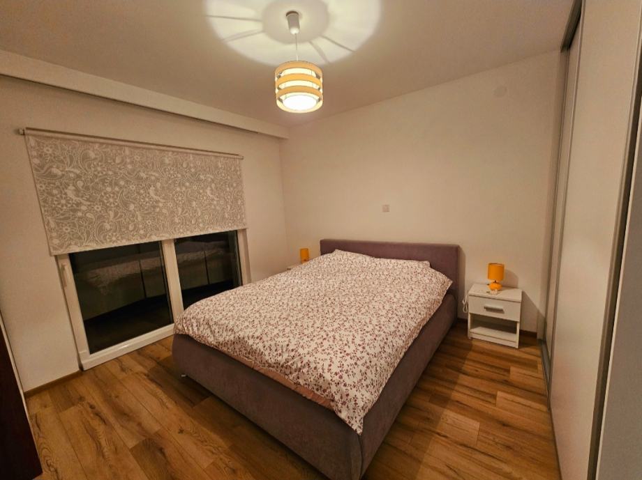 Dvije spavaće sobe, dva balkona, kupaona, kuhinja+blagavaona+dnevna soba, spremište.
