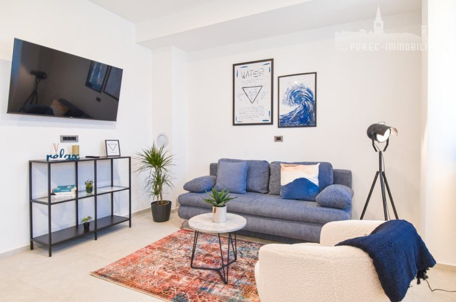 Prodaje se novouređeni stan sa dvije spavaće sobe, na prvome katu manje stambene zgrade, u malome turističkom mjestu sa svim potrebnim sadržajima za lagodan život.
