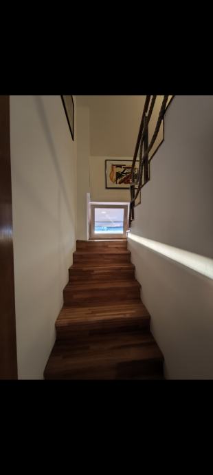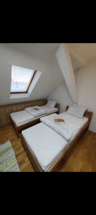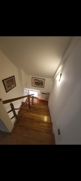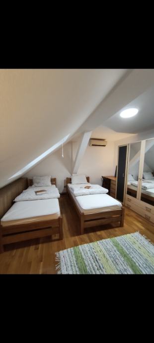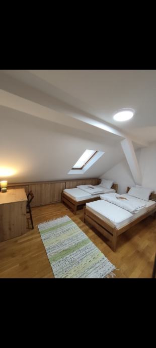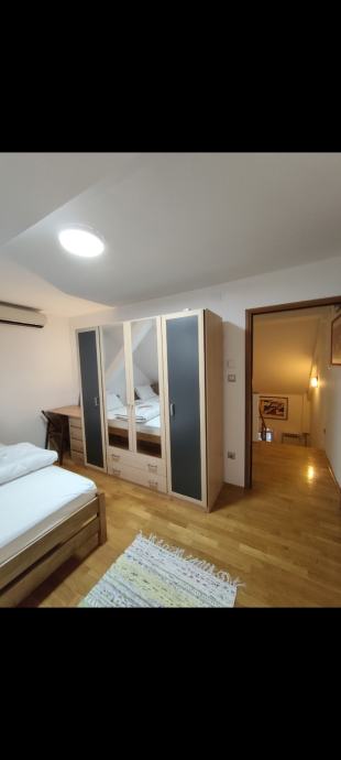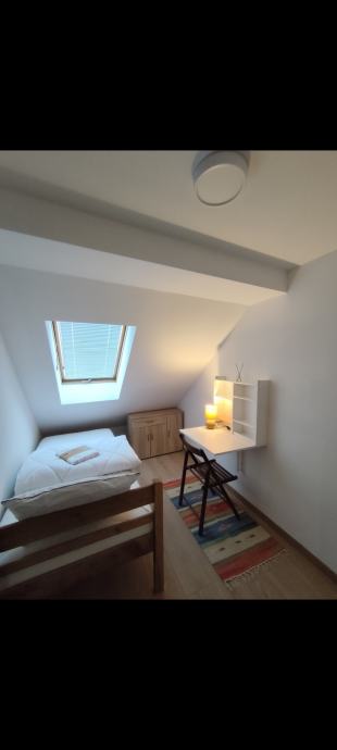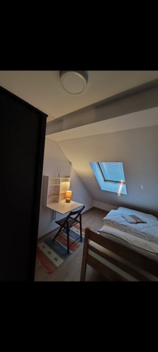 Stan se sastoji od stubišta , hodnika , jedne velike spavaće sobe, kupaone , dnevnog boravka sa kuhinjom te dvije jednokrevetne sobe....