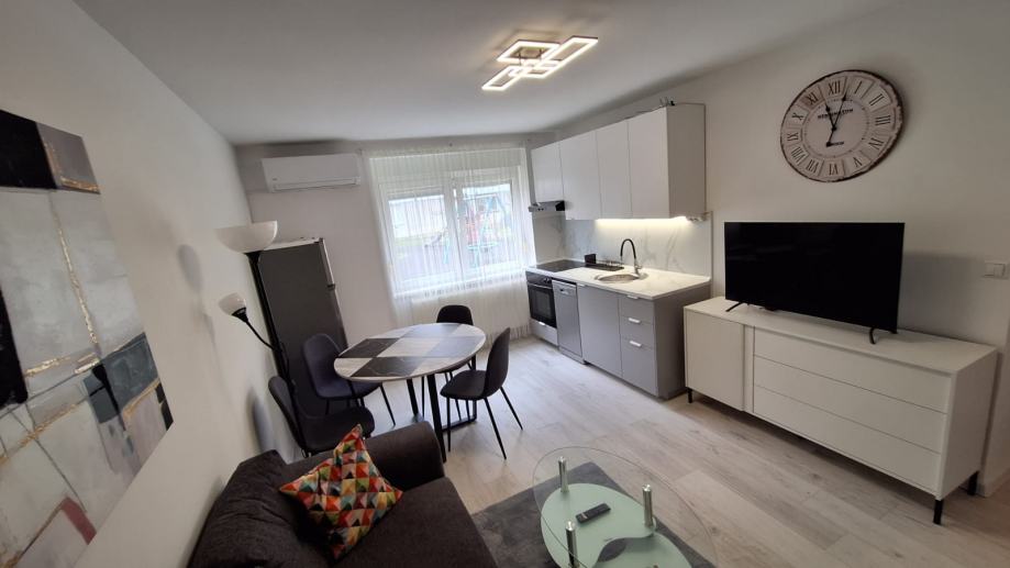 Stan je uređen,potpuno namješten sa svim novim potrebnim namještajem i aparatima (perilica suđa,perilica rublja,klima,frižider sa zamrzivačem,smart TV 43", mikrovalna i ostali mali kućanski aparati).Odličan raspored,odvojena velika spavaća soba sa bračnim ležajem 160×200, odvojeni kupaona i toalet. Stan se nalazi u Novom Zagrebu, naselje Trnsko. Lokacija stana je 1min do tramvajske stanice i 30sec do autobusne stanice. U samoj blizini se nalaze dućani,dom zdravlja,ljekarna,škola,vrtić,plac... Udaljenost od Avenue malla i Arena centra je jedna tramvajska stanica.