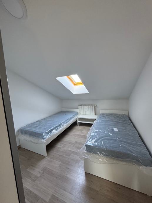 - dvije spavaće sobe s novim, nekorištenim madracima - jedna soba ima bračni krevet, druga soba ima dva odvojena kreveta (200 × 80 cm) te