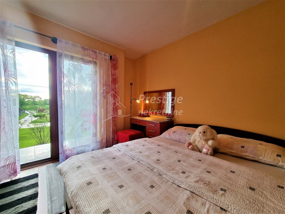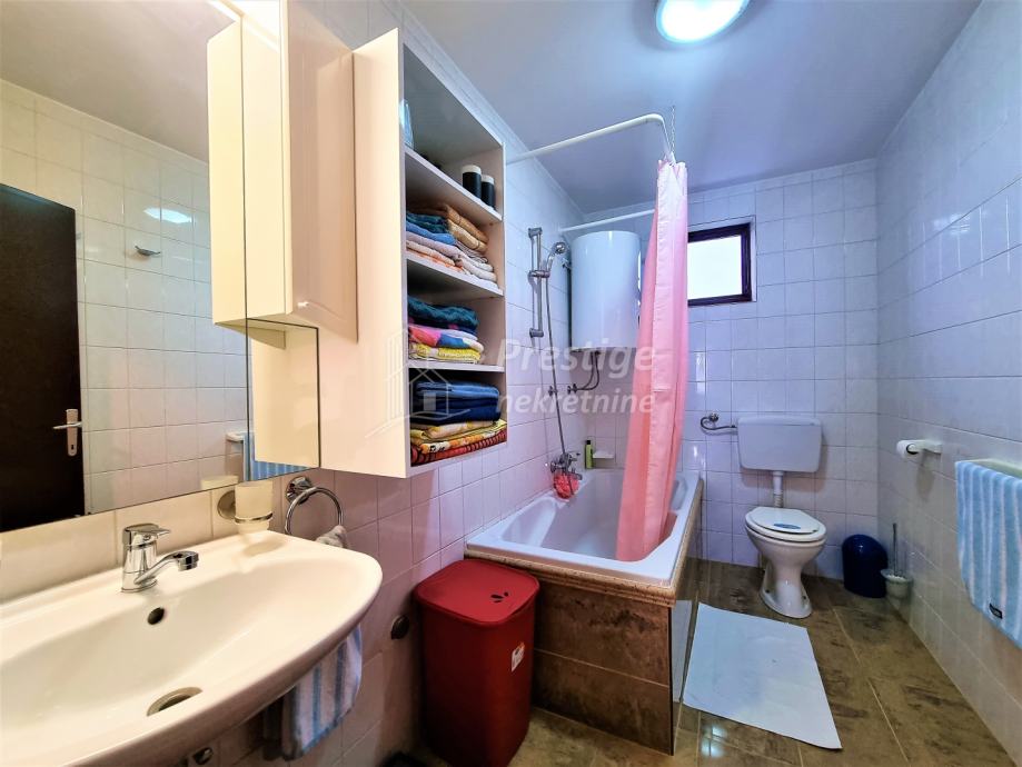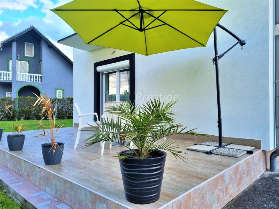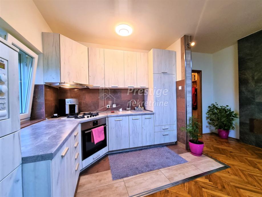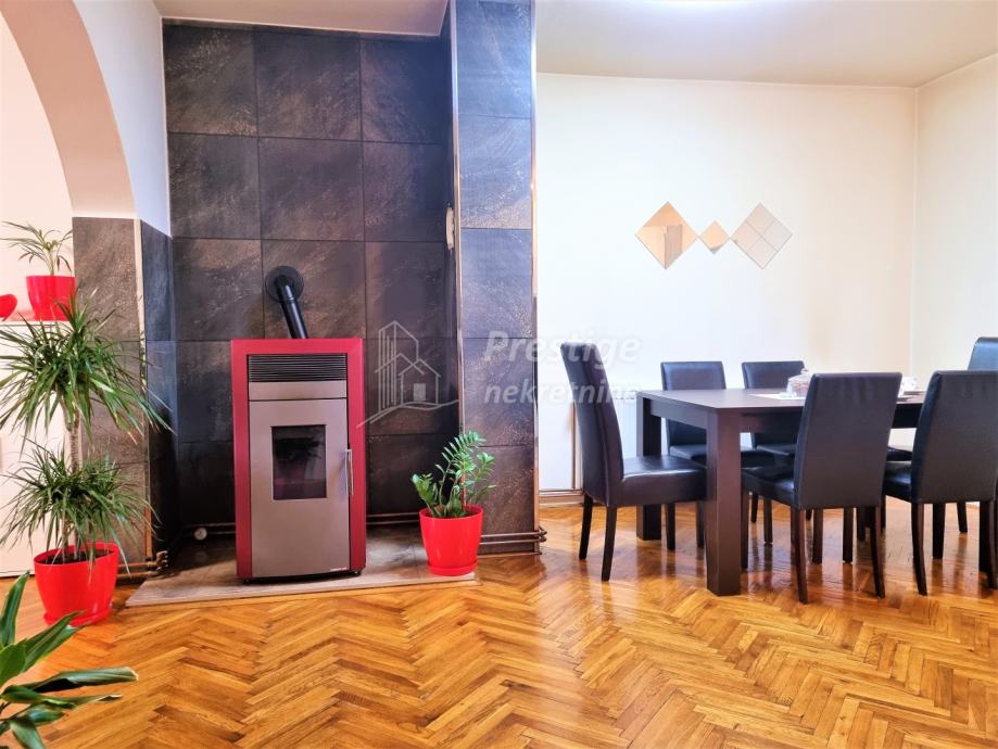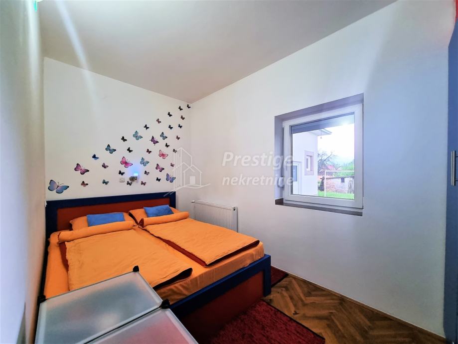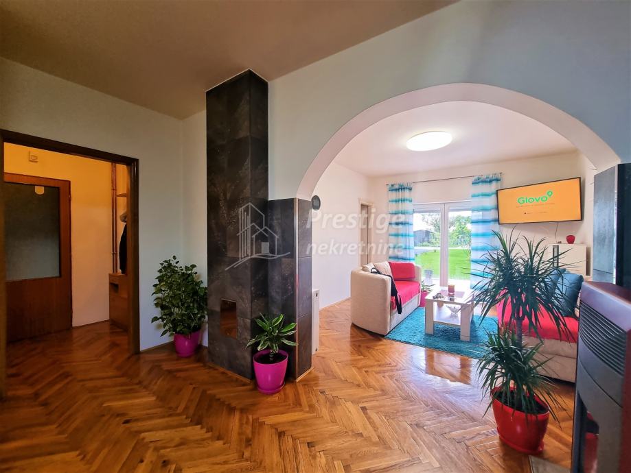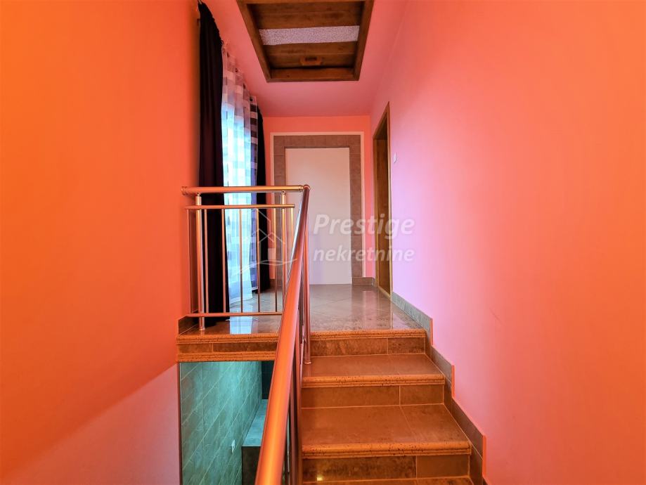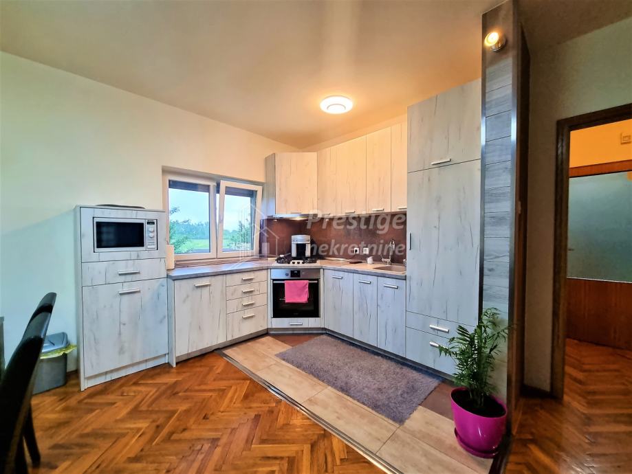 Na prodaju je lijepa, uređena i namještena kuća u mjestu Rajić pored Novske. Kuće površine 165 m2 se nalazi na ogromnoj okućnici od ukupno 2345 m2. Na izvrsnoj je poziciji u Kolodvorskoj ulici u Rajiću, na svega 200 m od željezničke stanice i 500m od centra mjesta u kojem je i autobusna stanica, dom zdravlja, ljekarna, pekarnica, trgovina, frizerski salon, igralište i sve drugo potrebno za ugodan obiteljski život. Kuća se sastoji od uređenog prizemlja i kata te neuređenog potkrovlja. U prizemlju je prostrani dnevni boravak koji se veže na novu kuhinju opremljenu vrhunskim aparatima i blagovaonicu, dječja spavaća soba, prostrana kupaonica te ostava. Stubištem obloženim vrhunskim poliranim porculanskim pločicama dolazi se na kat na kojem su još tri spavaće sobe i još jedna uređena kupaonica. Na podovima su u prizemlju hrastovi parketi i pločice, a na katu kvalitetni laminat. Grijanje u kući je na pelete, ali kuća ima i priključak na gradski plin. Na katu je drvena stolarija koja je u jako dobrom stanju, dok je u prizemlju postavljena PVC stolarija s ugrađenim komarnicima. Fasada ima termoizolaciju, stiropor debljine 16cm. Kuća se prodaje potpuno namještena, a moguća je i zamjena za stan u Novoj Gradiški ili na moru. Vlasništvo uredno.
