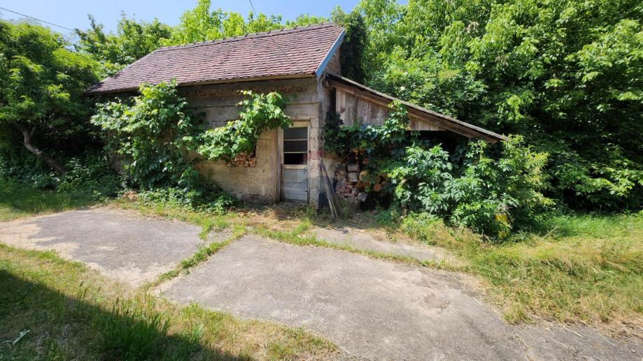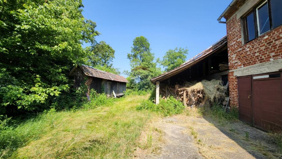 Kuća sa pripojenom gospodarskom zgradom ima 140m3 i u dvorištu se nalazi još jedna manja zgrada koja služi kao drvarnica.