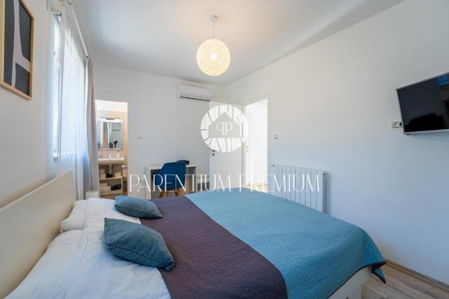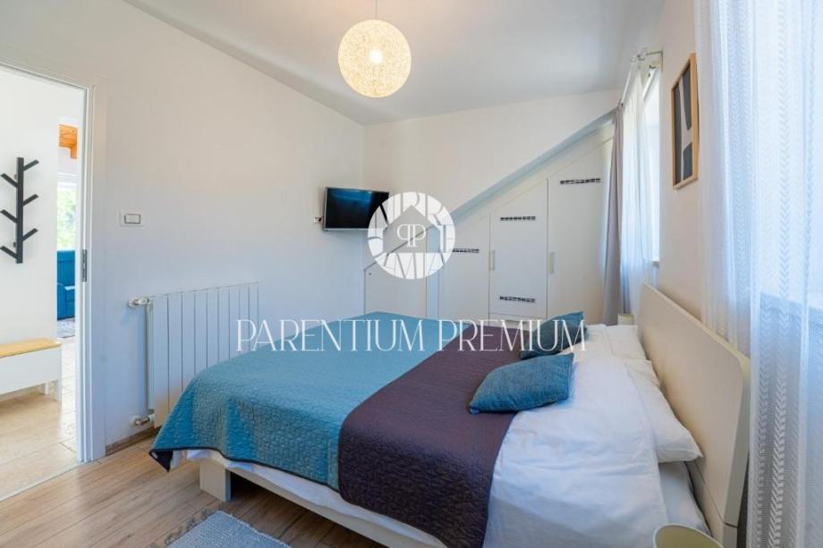 Unutarnje stepenice vode na prvi kat, gdje se nalazi još jedna prostrana spavaća soba s lođom i vlastitom kupaonicom.