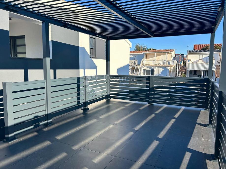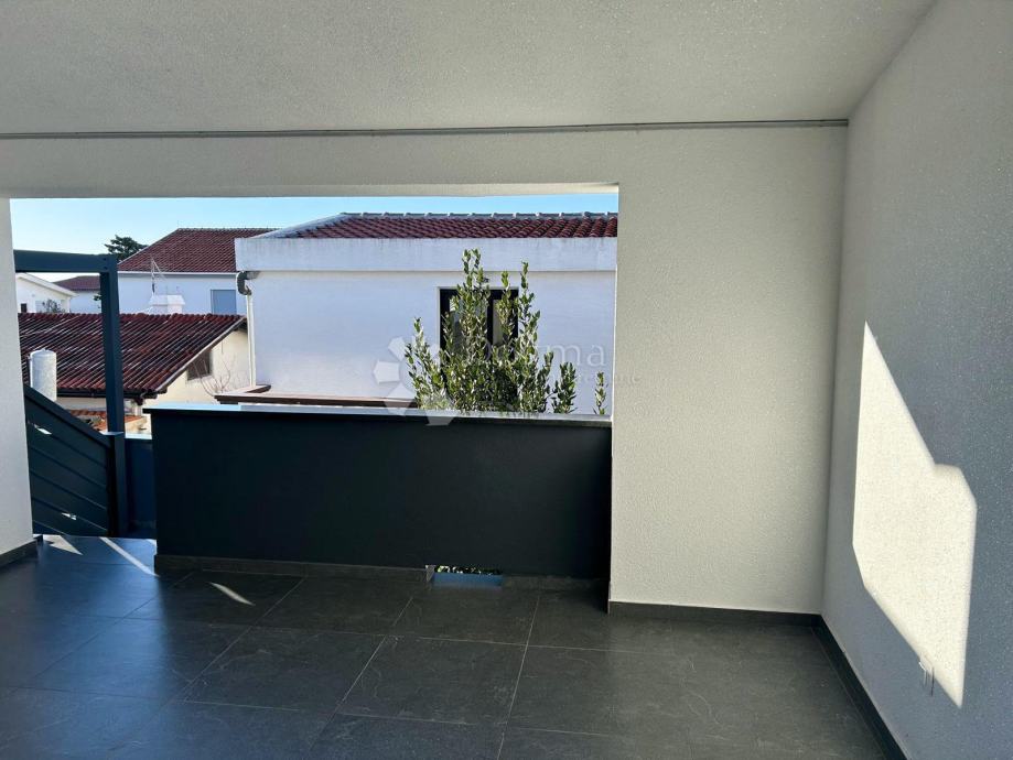 -Kat: Vanjsko stubište vodi do stana s tri sobe (dnevni boravak i dvije spavaće sobe), kupaonicom te velikom natkrivenom terasom s pogledom na more.