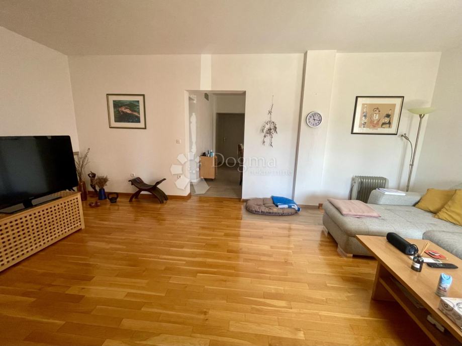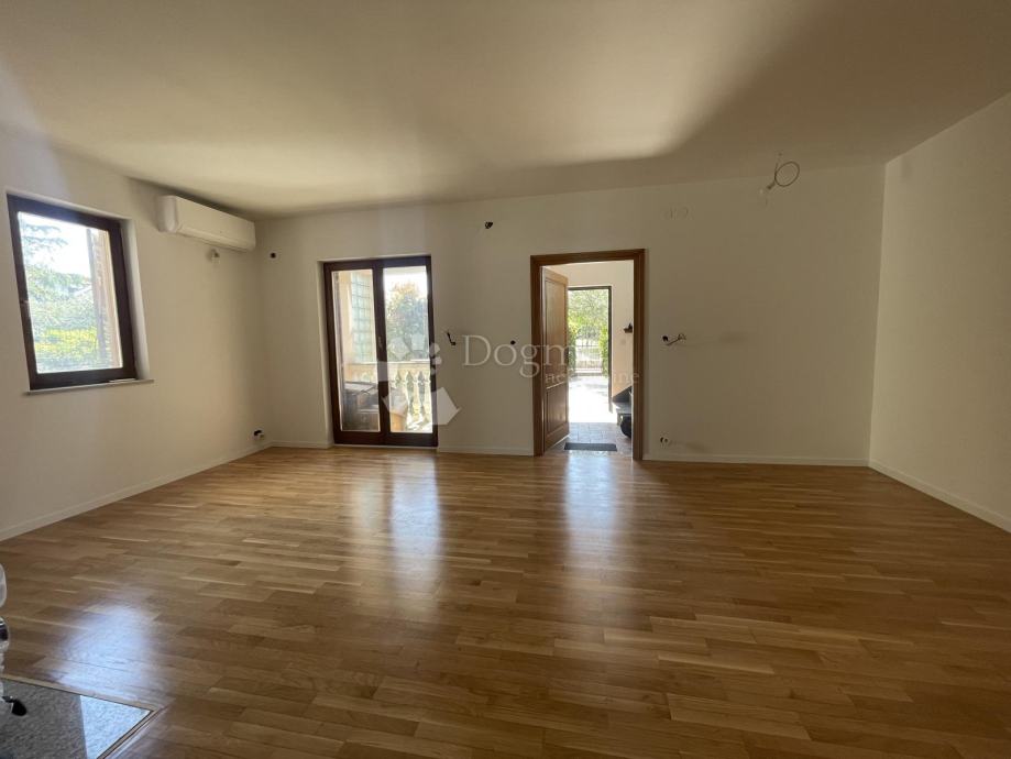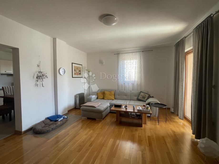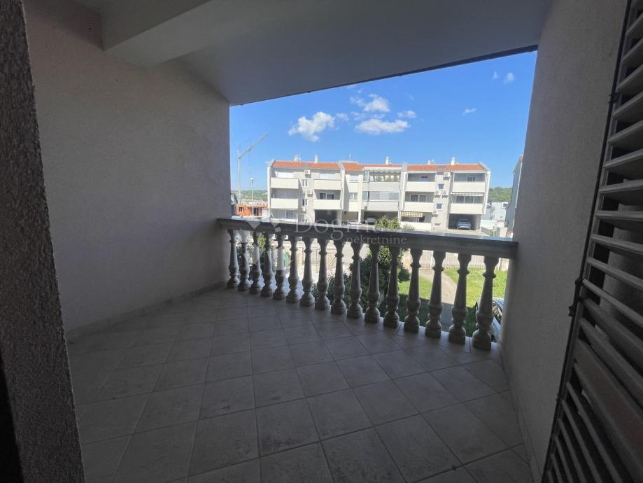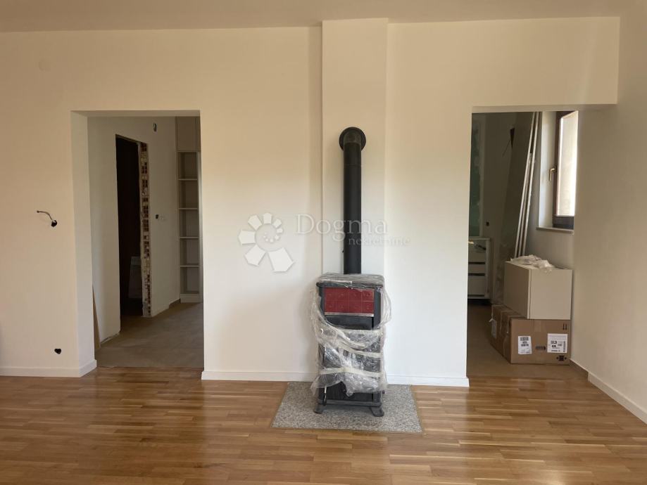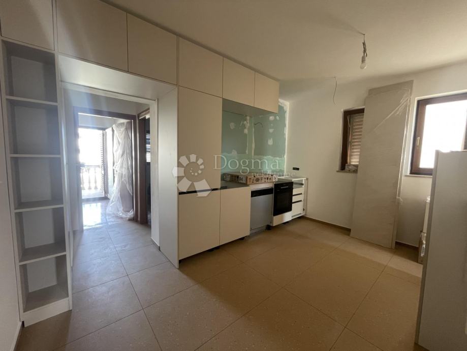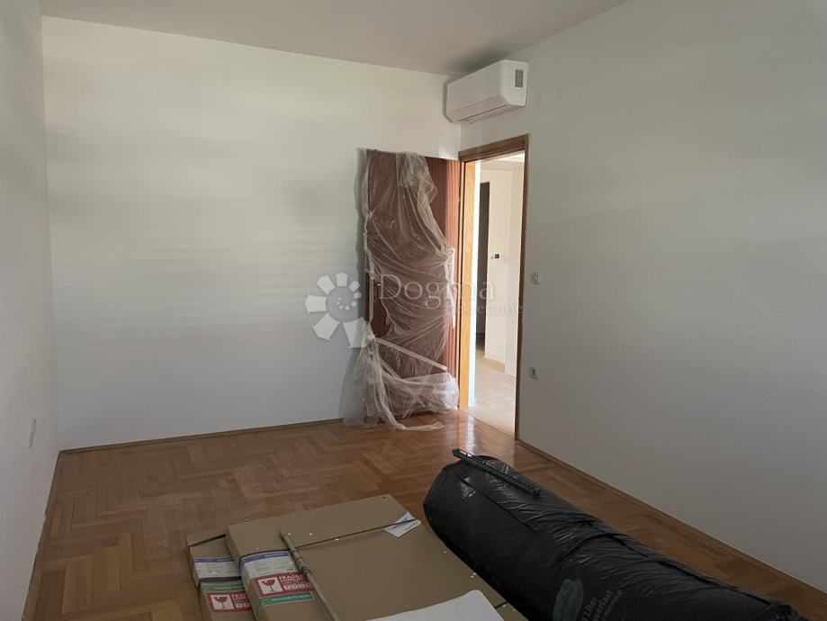 1. kat (u naravi drugi kat): Potpuno renoviran stan. Ostali su samo sitni završni radovi. Sastoji se od kuhinje + dnevnog boravka, dvije spavaće sobe, kupaonice i dvije lođe.