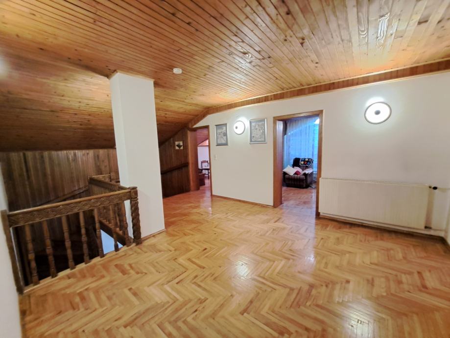 Na katu se nalazi prostrani centralni prostor koji povezuje sve prostorije - veliku kupaonicu sa kadom i tušem te dvostrukim umivaonikom, 3 sobe (od kojih jedna ima izlaz na balkon) te glavnu spavaću sobu koja ima vlastiti balkon i ugradbeni ormar izveden po cijelom zidu prostorije.
