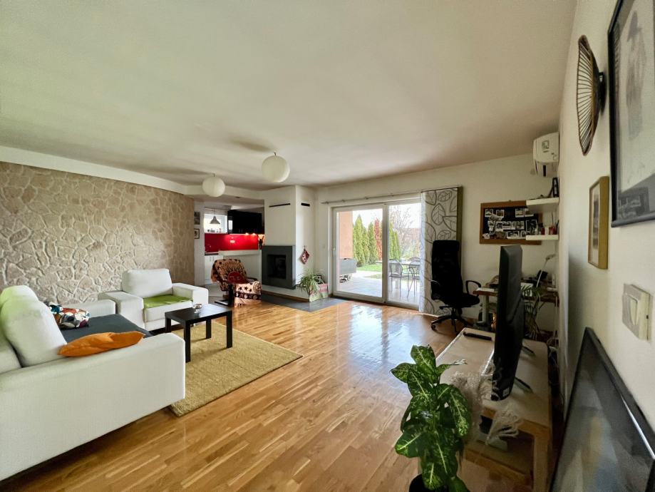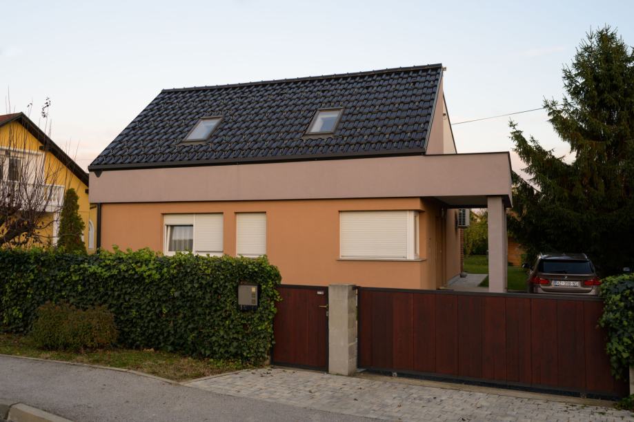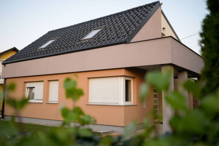 Samostojeća useljiva kuća ukupne bruto površine 207 m2 udaljena 7 km od centra grada Varaždina. Izgrađena 2011. godine, prizemnica sa velikom dnevnom sobom spojenom sa kuhinjom, kupaonom, malim wc-om i dvije spavaće sobe. Tavanski prostor kompletno izoliran. Iz dnevne sobe pruža se pogled na dvorište kroz prostranu staklenu stijenu. Stolarija kuće je PVC, a izolirana je termofasadom debljine 12 cm.