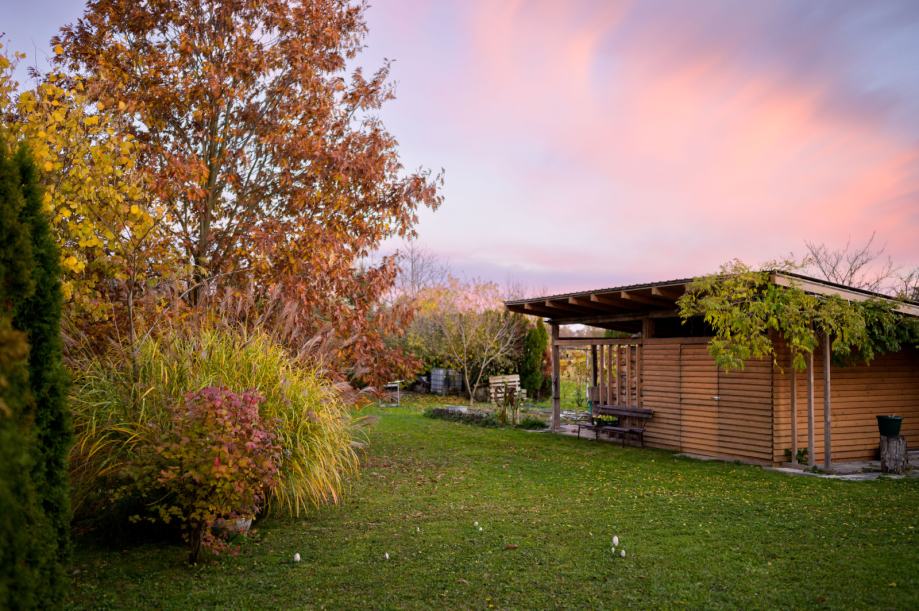 Uređena okućnica je ukupne površine 770 m2 na kojoj se nalazi 30tak vrsta različitih biljaka i nasad voćaka (trešnja, višnja, šljiva, jabuke, kruške, breskva...). Dvorište je orjentirano na istočnu stranu što omogućava ugodan hlad ljeti.