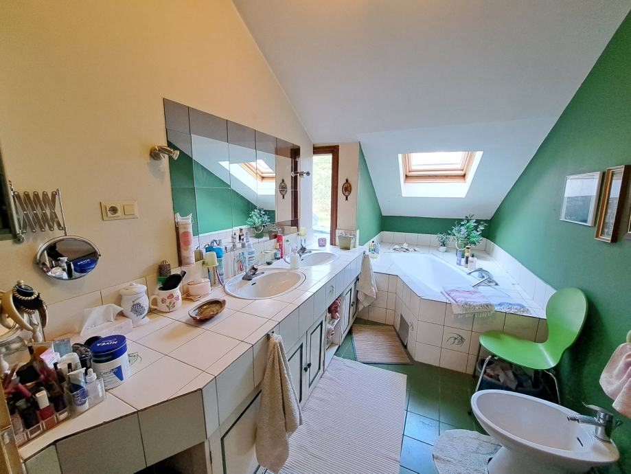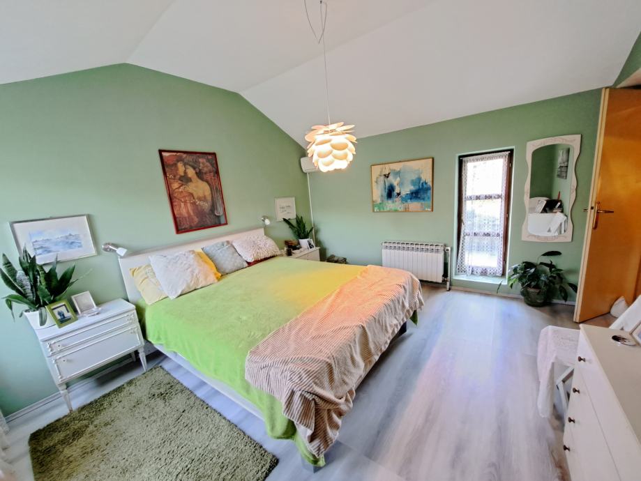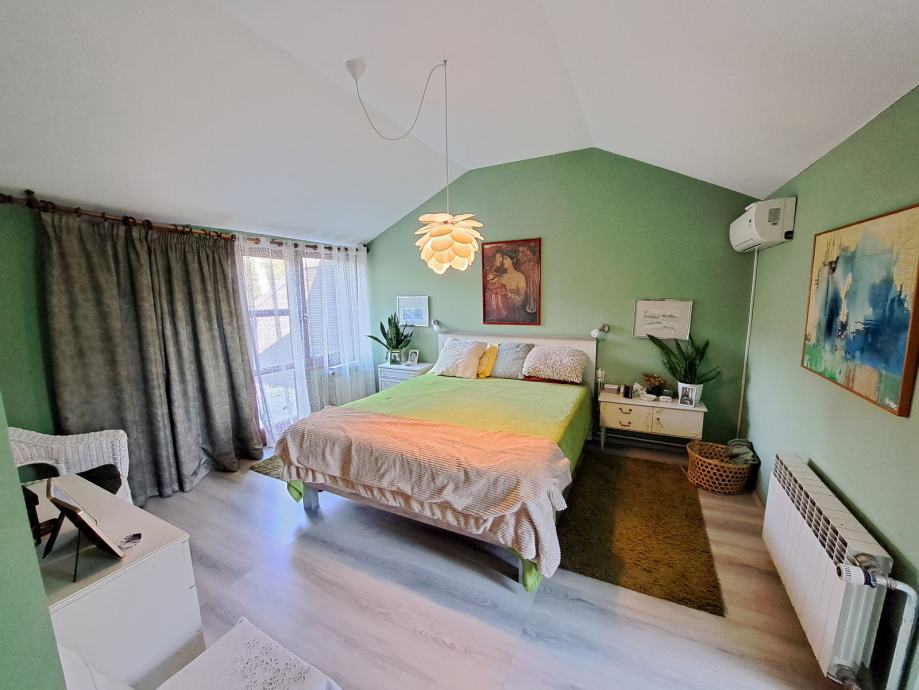 Prizemlje se sastoji od ulaza, kuhinje, dnevnog boravka sa blagovaonicom, radne sobe, spavaće sobe te kupaonice dok se na katu nalaze još 3 spavaće sobe te glavna kupaonica i dodatni sanitarni čvor.
