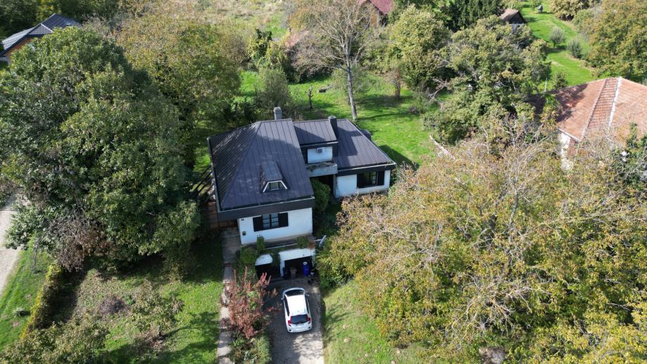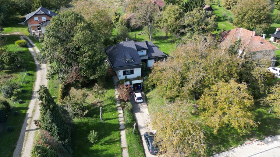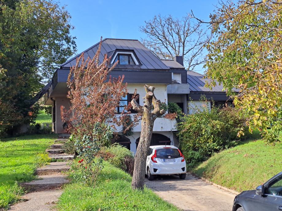 Kuća posjeduje i garažu te natkrivenu ulaznu terasu, a zbog uvučenosti od ceste i zelenila ispred kuće, svojim stanarima osigurava intimni prostor.