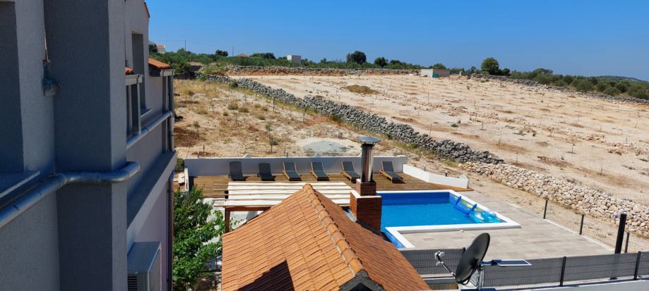 U sklopu okućnice nalazi se bazen sa sunčalištem za koji je pripremljena intalacija za grijanje vode što bi omogućilo korištenje bazena i van ljetnog perioda.