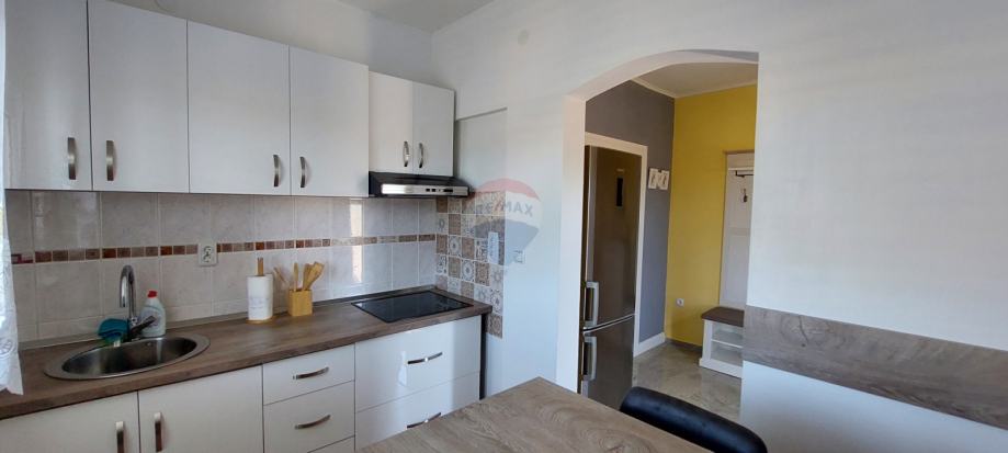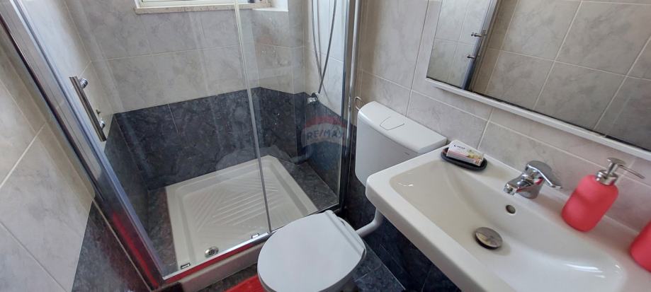 Na prvom katu nalazi se stan ukupne površine 79,9 m2, a sastoji se od dvije spavaće sobe, hodnika, kupaonice, kuhinje i dnevnog boravka.